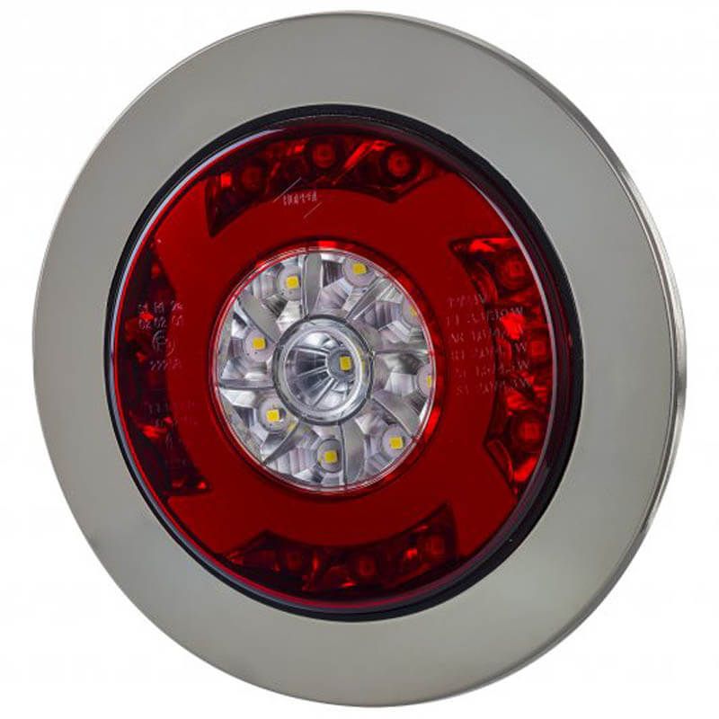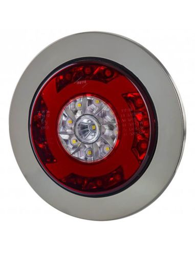 Esta luz traseira LED redonda cromada tem um desenho muito marcante e é muito visível uma vez que utiliza a luz de posição LED Neon com uma forma muito marcante, inclui também uma luz LED invertida e luz de nevoeiro.