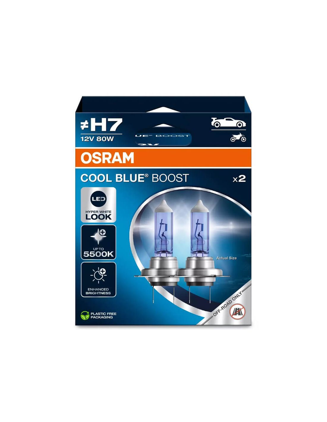 Melhore a iluminação do seu carro com as lâmpadas OSRAM Cool Blue Boost H7 e dirija com estilo e segurança! Pacote 2 Unidades.