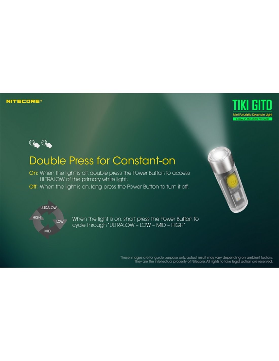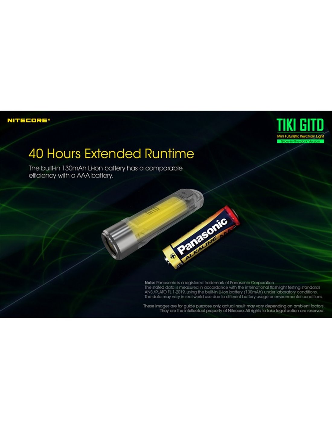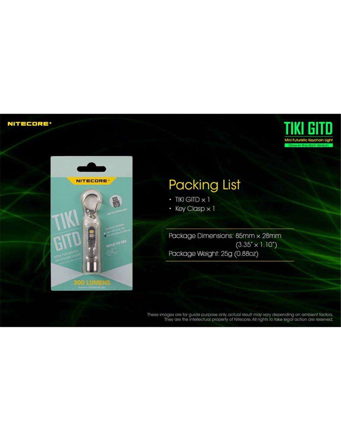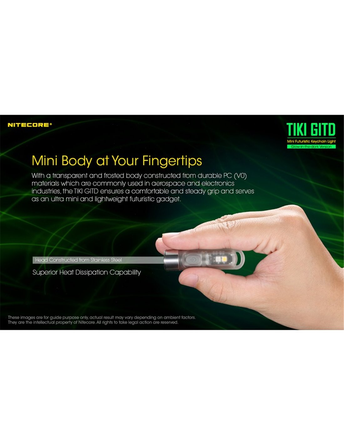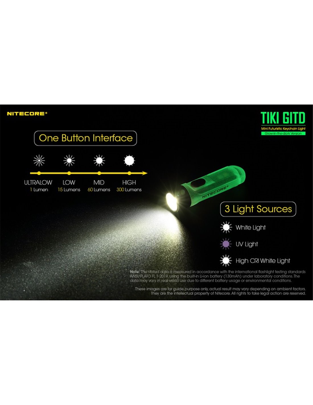 A lanterna LED TIKI GITD GREEN é uma lanterna ultraleve com uma saída de 300 lúmens e um alcance de até 71 metros . Seu design exclusivo que brilha no escuro e classificação IP66 o tornam perfeito para atividades ao ar livre e emergências.
