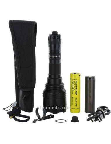 Inclui : Nova lanterna LED P30 , bateria recarregável USB-C NL2150R 5000mAh, estojo têxtil, cabo USB-C para carregar a bateria, clipe, cordão, borracha sobressalente 2, borracha sobressalente do botão de energia e suporte para bateria 18650/CR123.