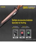 O novo Nitecore NOVO P30 Fabricado e projetado pelos melhores profissionais da empresa Nitecore, conduziu a tecnologia, uma estrutura de liga de alumínio grau aeronáutico com grau militar anonizado HA III acabamento e uma lente de vidro mineral ultra-clara com acabamento anti-reflexo.