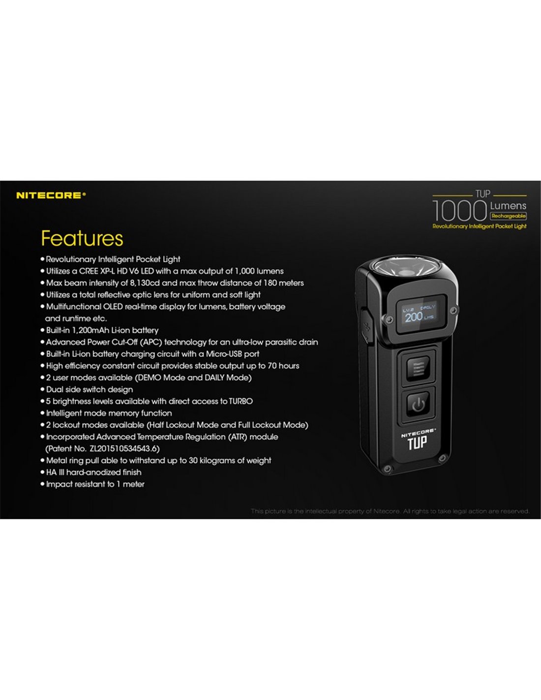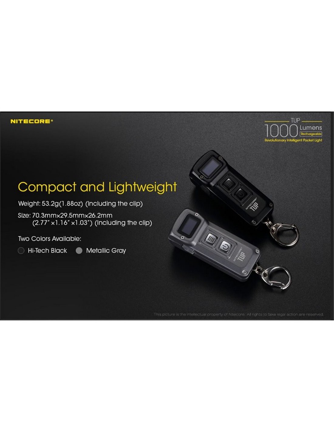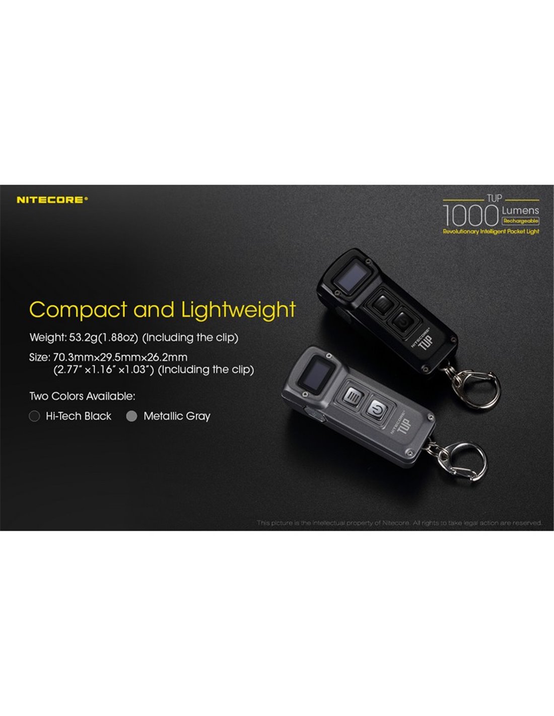A Nitecore TUP Gray é uma lanterna LED EDC de alto desempenho que se destaca pelo seu design compacto e acabamento cinza metálico . Com uma potência de 1.000 lúmens e um alcance de 180 metros , é perfeito para uso diário, uso profissional ou atividades ao ar livre .