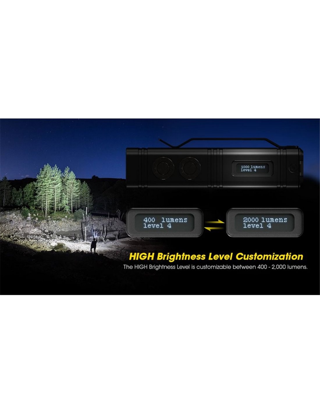 - Modos personalizáveis: Possui 5 níveis de brilho, incluindo um alto nível personalizável, para se adaptar às diferentes necessidades.