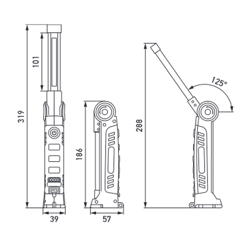 A lanterna de oficina LED UPS300 com potência de 300Lm e luz frontal e superior tem um design resistente com o qual facilmente se torna uma ferramenta de trabalho perfeita graças ao seu invólucro resistente, que suportará quedas ocasionais ao solo para maior segurança e durabilidade. Tem as seguintes dimensões: altura de 31,9 cm, comprimento de 5,7 cm, largura de 3,9 cm com peso com baterias de 200g.