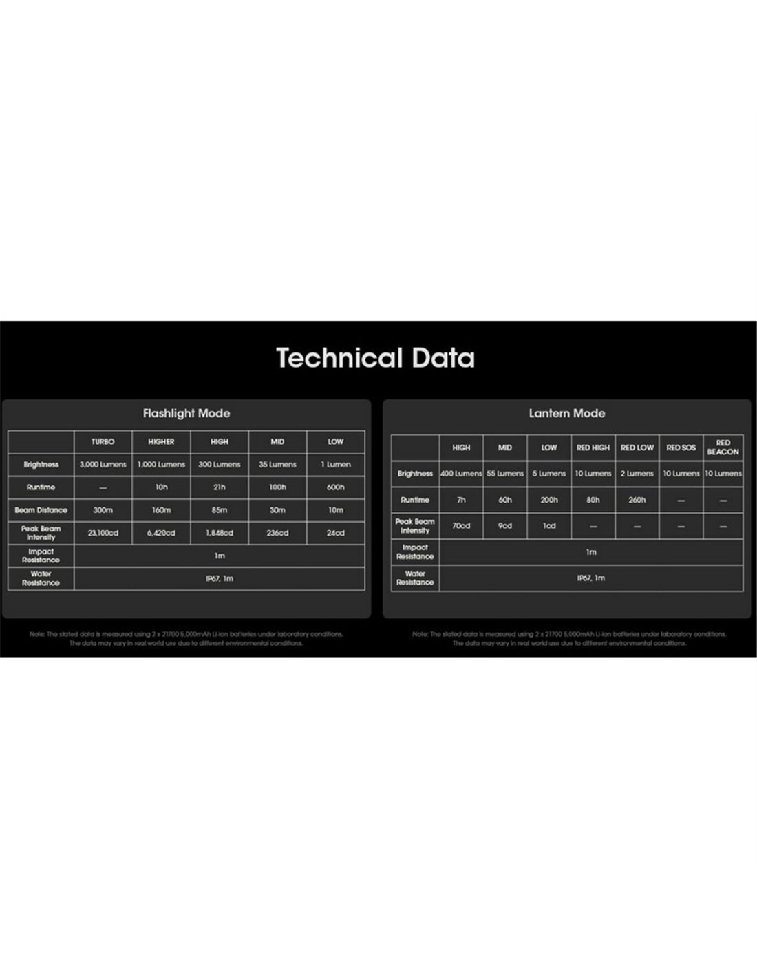 A NITECORE LR70 é uma lanterna portátil multifuncional que combina iluminação poderosa no modo lanterna com distribuição uniforme no modo lâmpada. Com 3.000 lúmens de potência, bateria recarregável de 10.000 mAh e certificação IP67, é ideal para atividades ao ar livre.