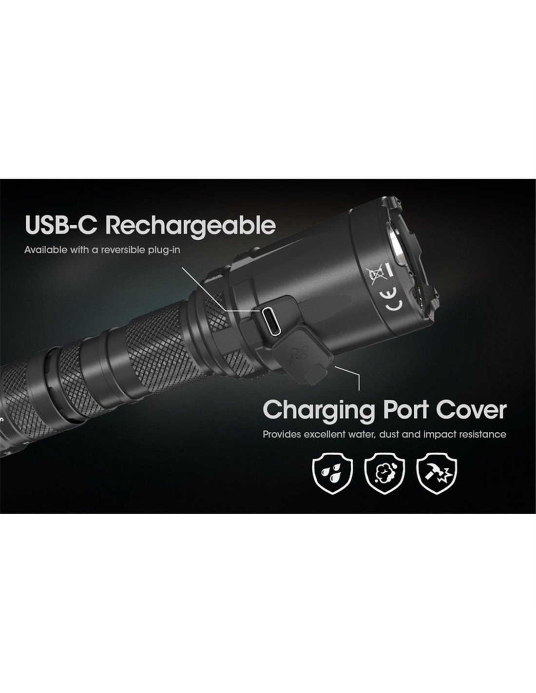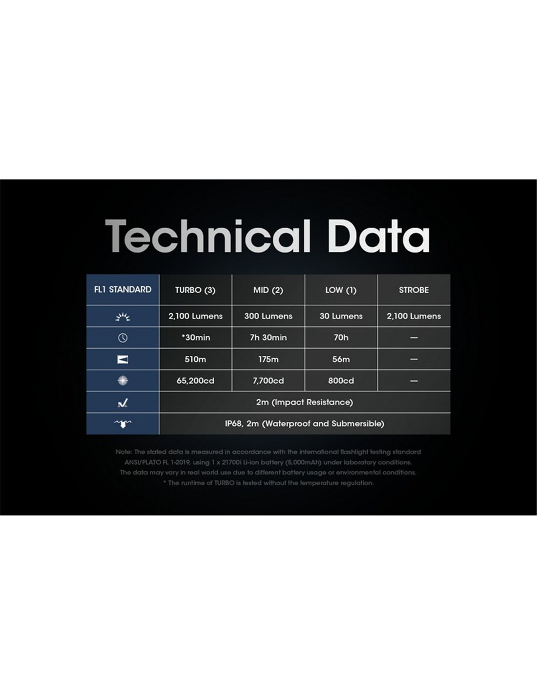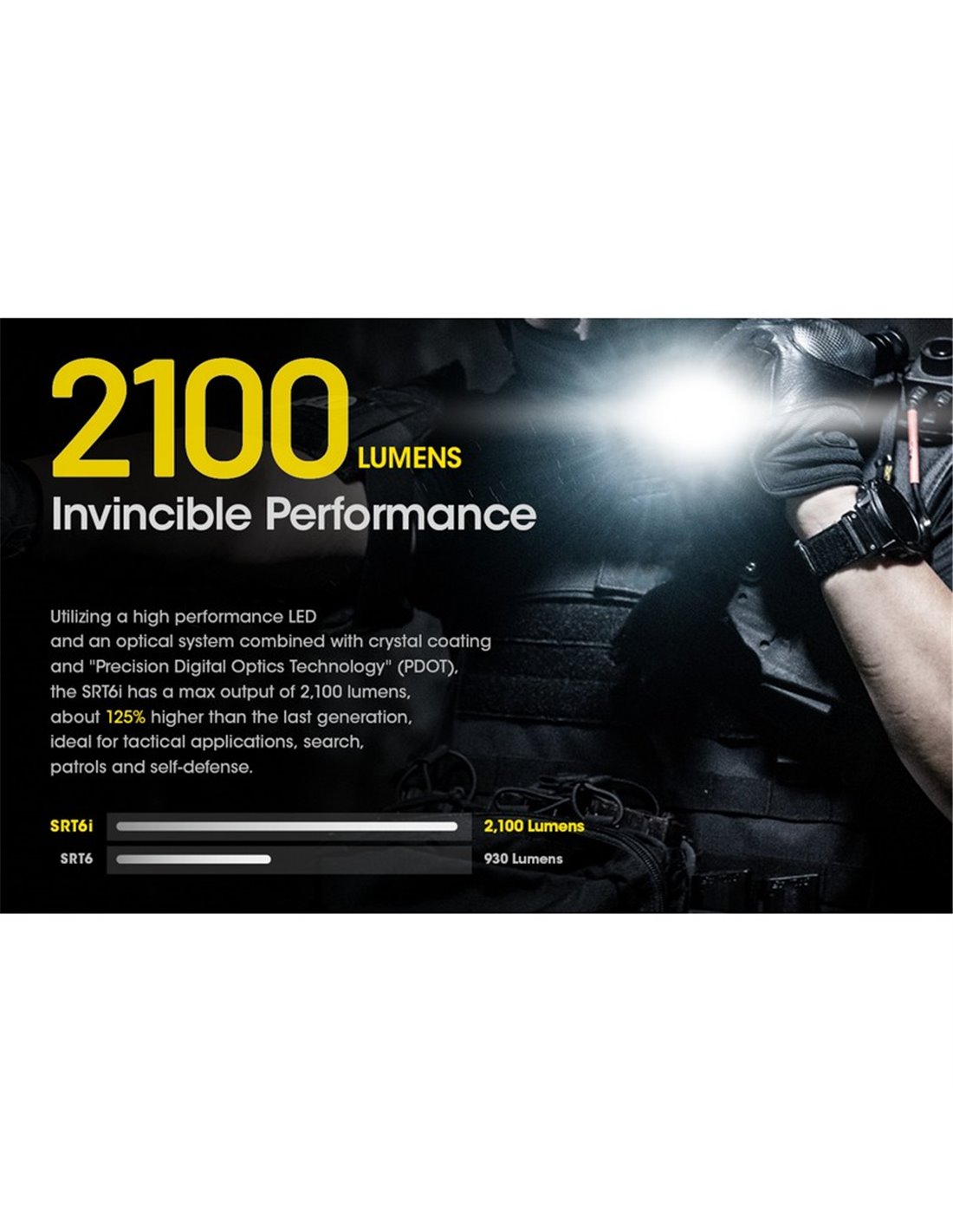 A lanterna NITECORE SRT6i fornece até 2100 lúmens de saída com um alcance de 510 metros . Incorpora a tecnologia Smart Selector Ring para seleção rápida