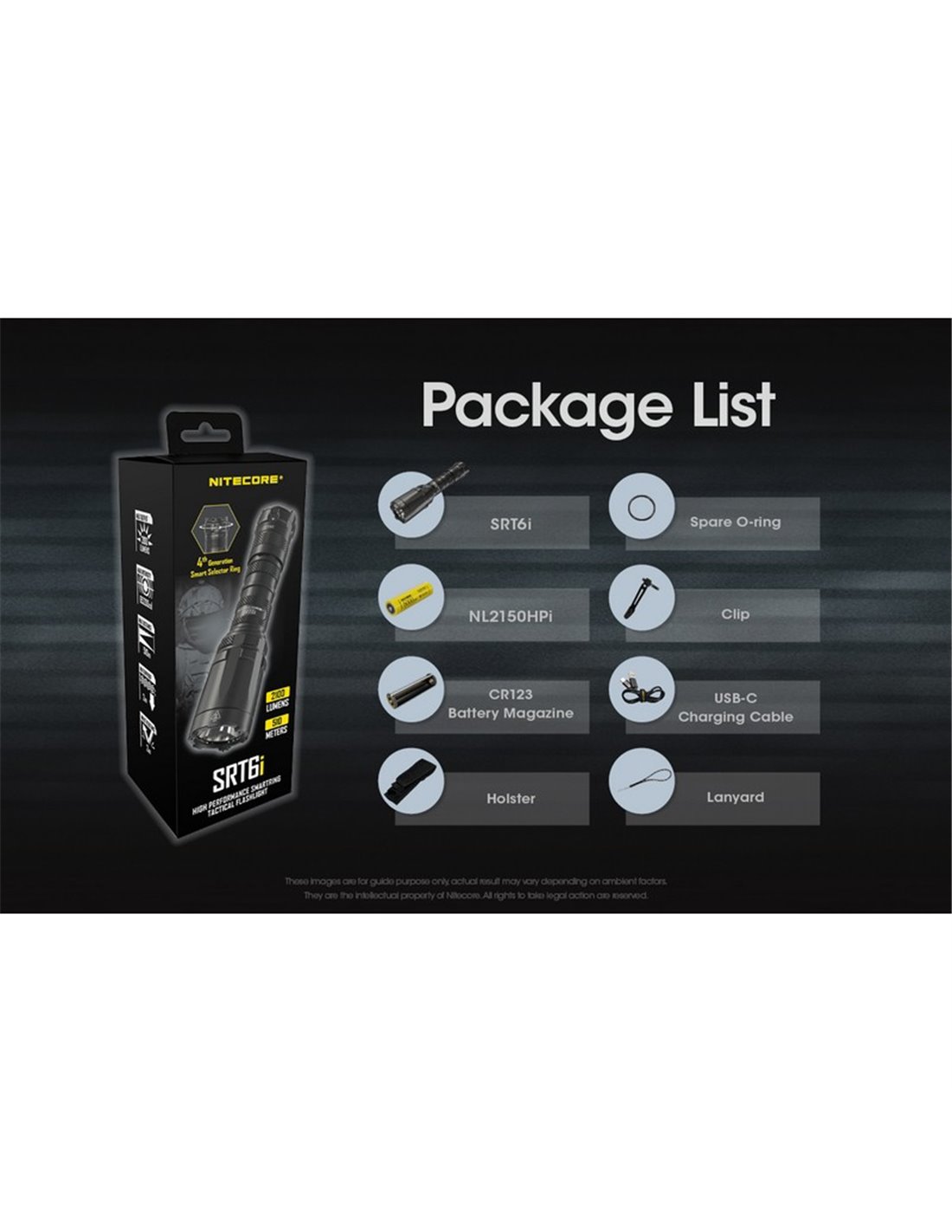 A lanterna NITECORE SRT6i é uma ferramenta de alto desempenho ideal para aplicações táticas , patrulhamento e caça. Com um alcance impressionante de 510 metros e uma saída máxima de 2100 lúmens , é a lanterna perfeita para quem exige alcance e controle excepcionais.