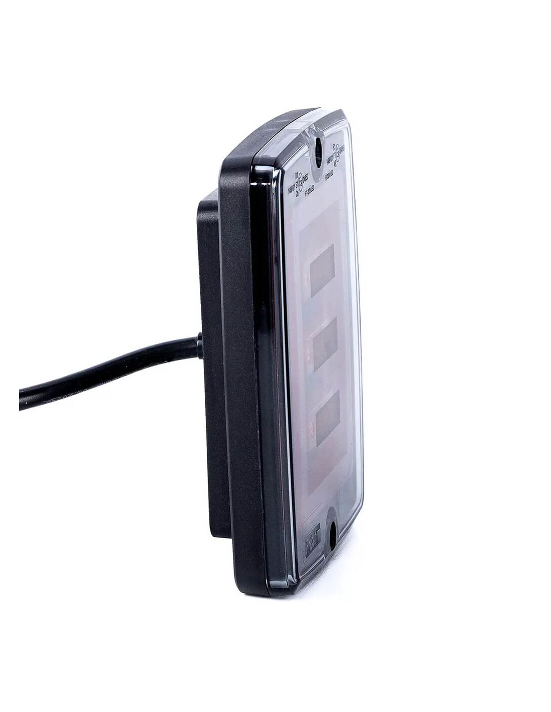 Ele integra luzes de posição, de marcha à ré e de neblina , abrangendo funções essenciais para veículos industriais e reboques.