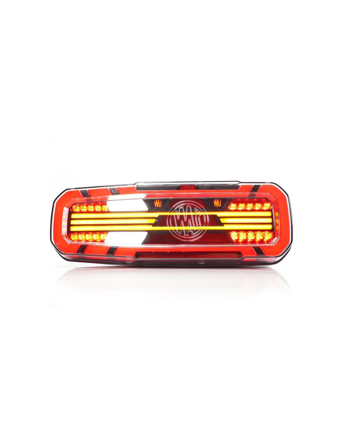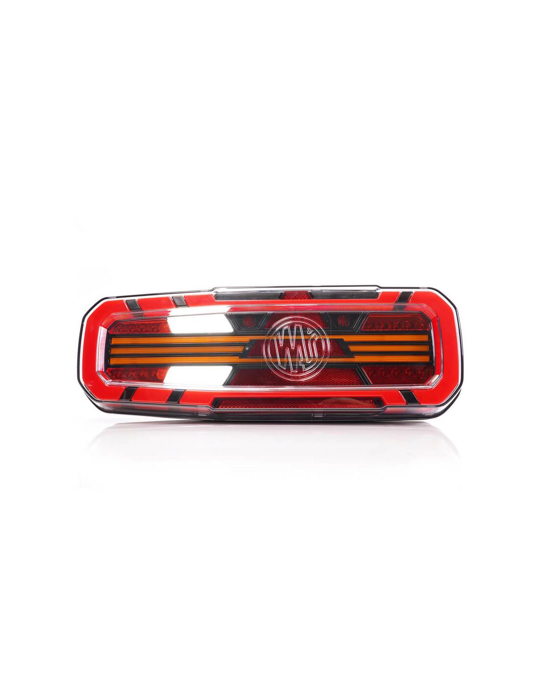 Possui um triângulo refletor integrado , sendo adequado para reboques e semirreboques que necessitam de um refletor triangular na traseira.