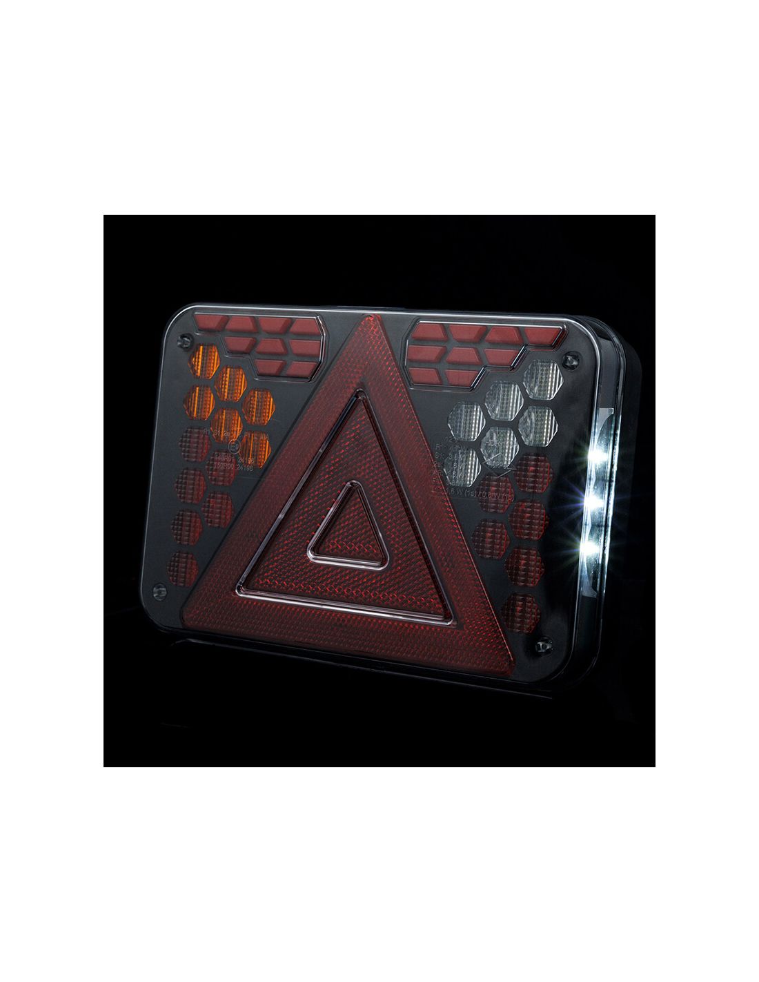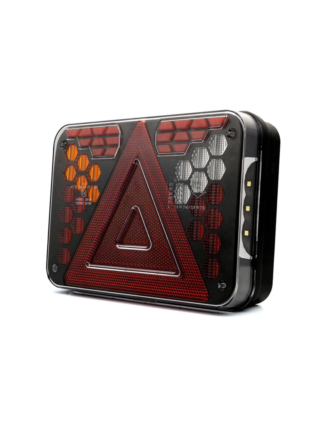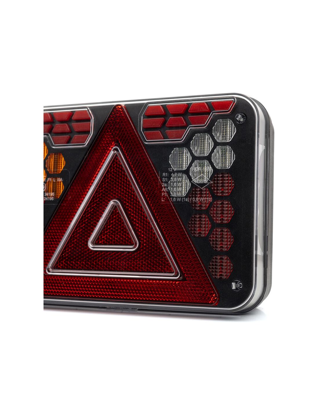 A luz de reboque LED Horpol HORUS combina tecnologia de ponta e máxima segurança em um único módulo compacto. Graças à sua luz de posição estilo neon e ao triângulo refletor 3D, ela define o padrão para iluminação de reboques modernos. Também possui uma luz de placa lateral com cabo próprio.