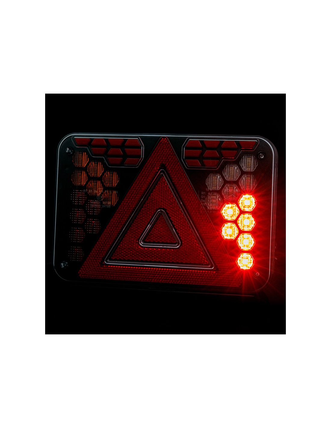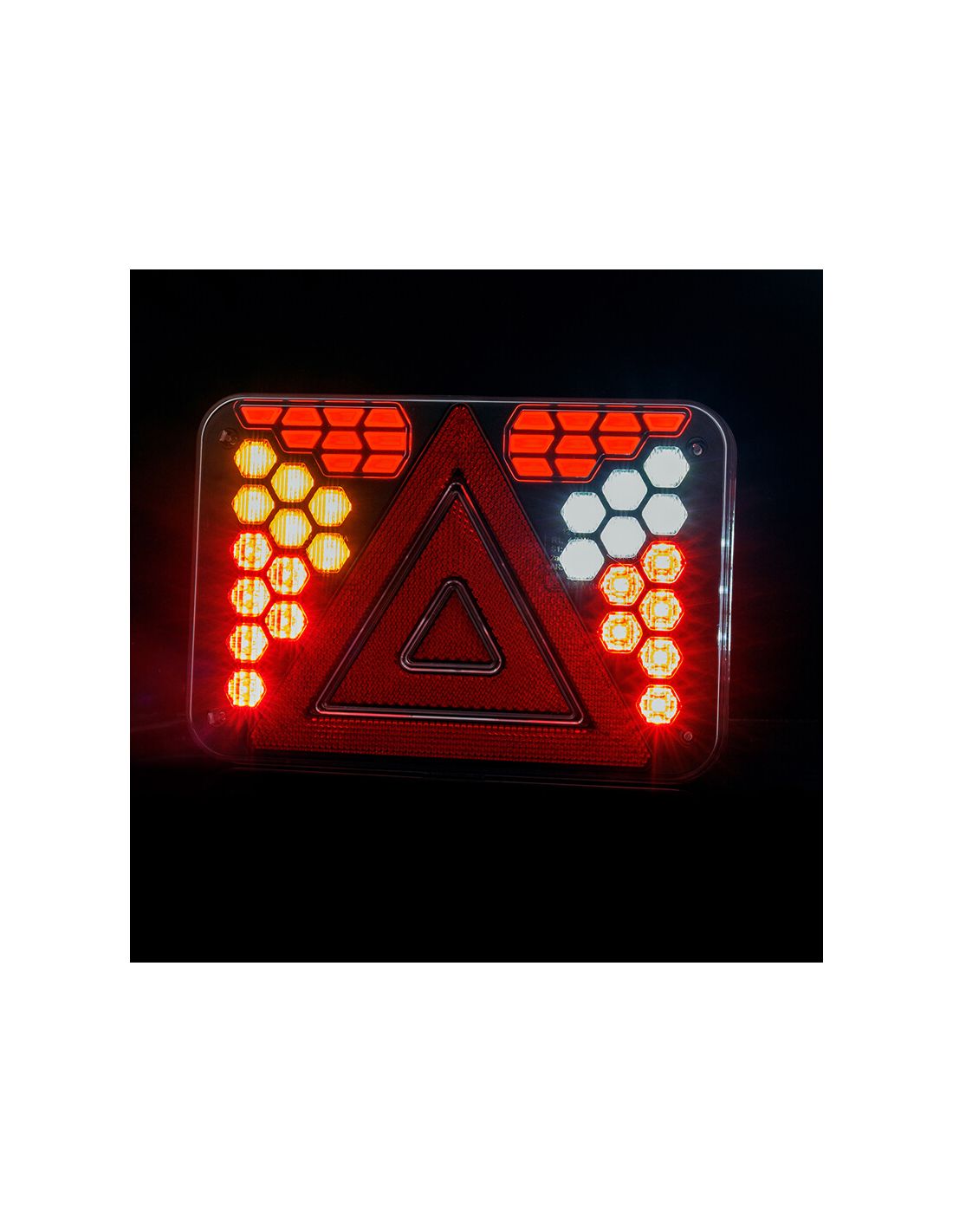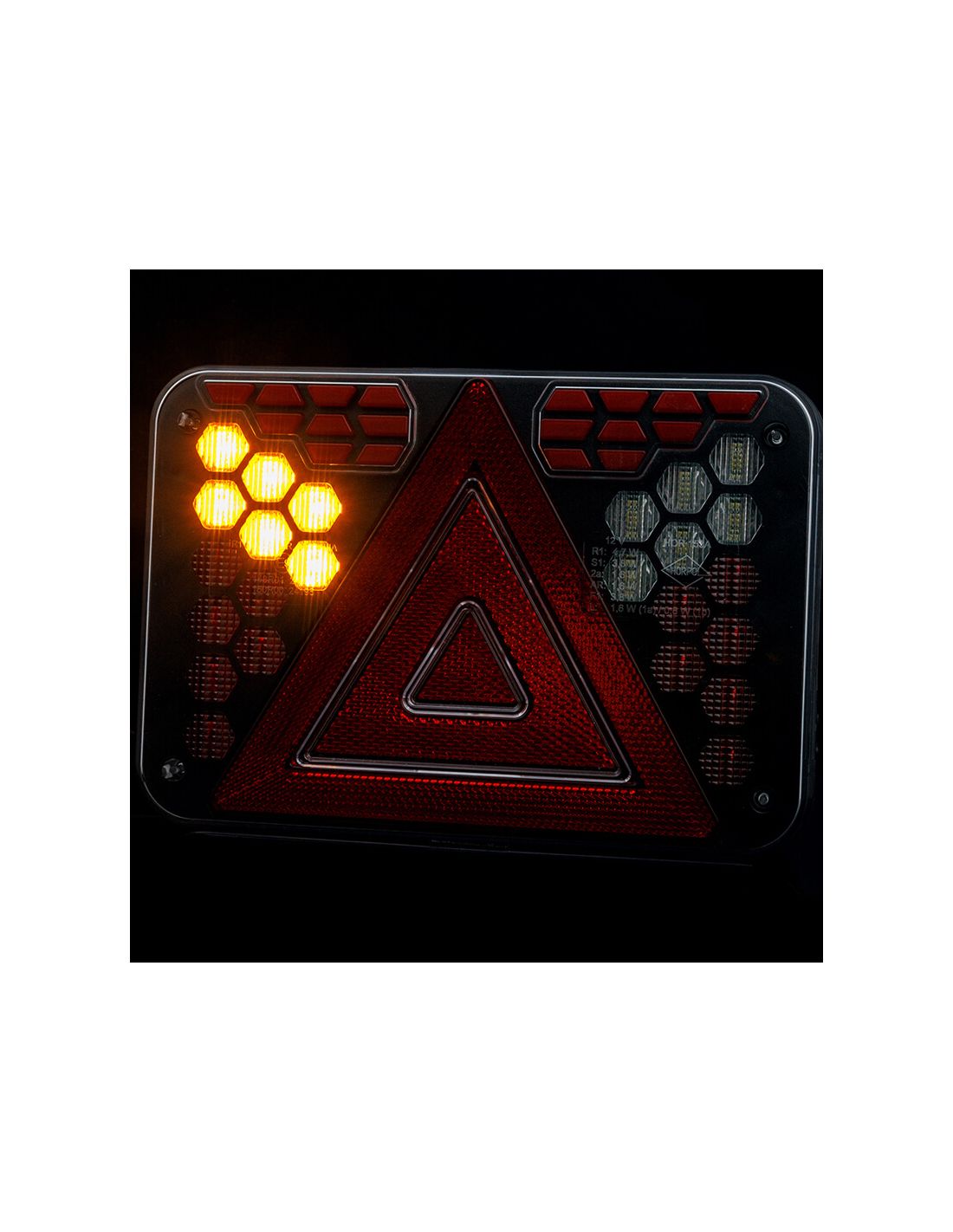A luz de reboque LED Horpol HORUS combina tecnologia de ponta e máxima segurança em um único módulo compacto. Graças à sua luz de posição estilo neon e ao triângulo refletor 3D, ela define o padrão para iluminação de reboques modernos. Também possui uma luz de placa lateral com cabo próprio.