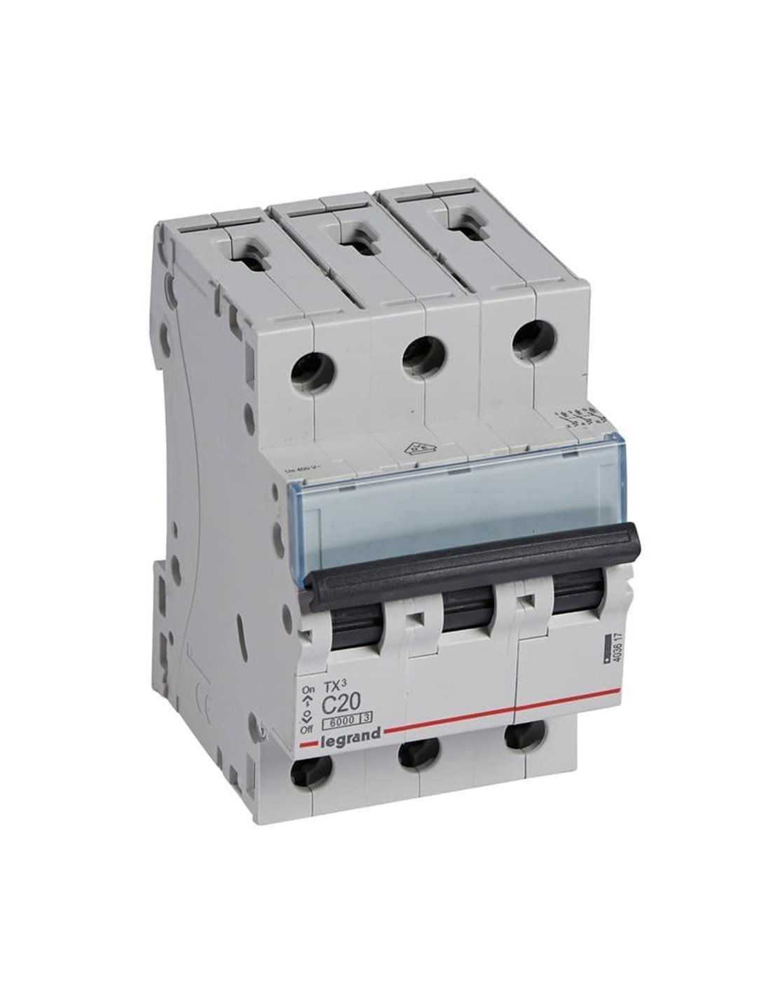 O interruptor magnetotérmico Legrand TX³ 403617 protege instalações trifásicas contra sobrecargas e curtos-circuitos . Versão tripolar para 400 V~ com 20 A , curva C e capacidade de interrupção de 6 kA . Montagem em trilho DIN , 3 módulos , conexão por barramento e cabo em terminais de parafuso . Incorpora Ui 500 V , Uimp 4 kV , IP20 e materiais livres de halogênio . Ideal para painéis trifásicos com picos de partida moderados (motores, ar condicionado, máquinas leves).