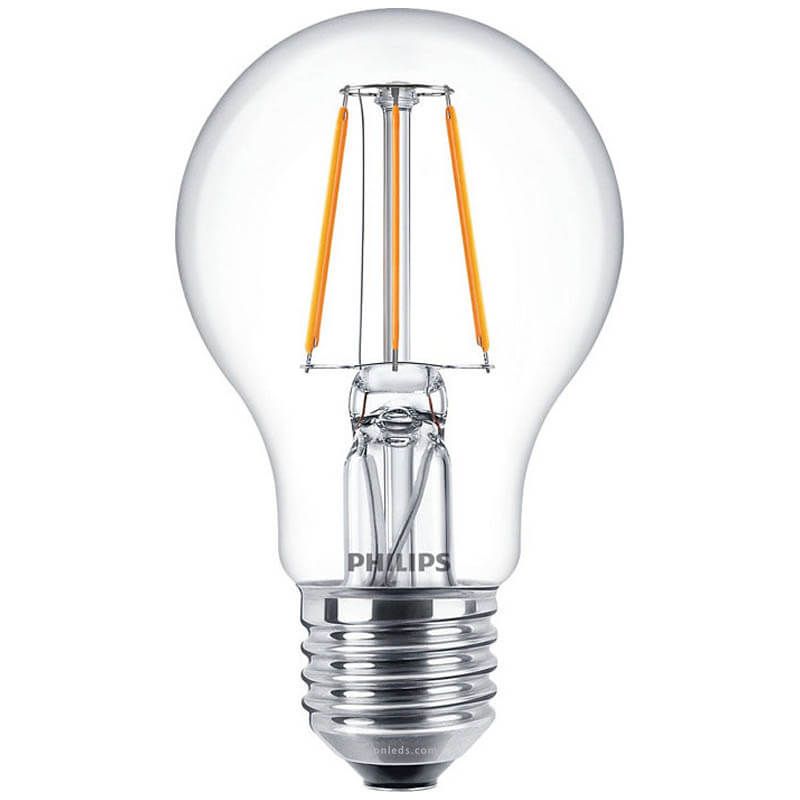 Lâmpada de filamento LED com rosca E27 e formato A60 com potência de 4,3W equivalente a 40W com intensidade luminosa de 540Lm, uma nova gama da Philips mais eficiente e mais respeitosa com o meio ambiente por ser uma lâmpada de vidro opaco, o tom de luz É natural 4000K e o vidro é transparente, perfeito para instalar em Lâmpadas onde a Lâmpada fica visível.