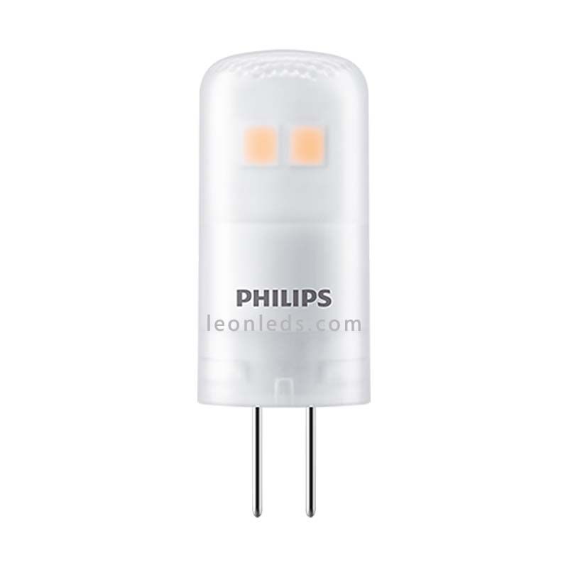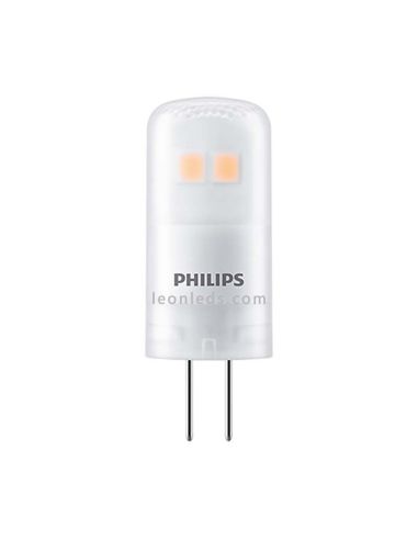 G4 CorePro LED LV cápsula Lâmpada LED com 1W equivalente a uma lâmpada halógena de 10W com luz branca quente de 2700K ou luz branca de 3000K. Esta lâmpada LED Philips G4 emite 115Lm para 2700K e 120Lm para 3000K, tem 12V e uma vida útil de até 15.000 horas.
