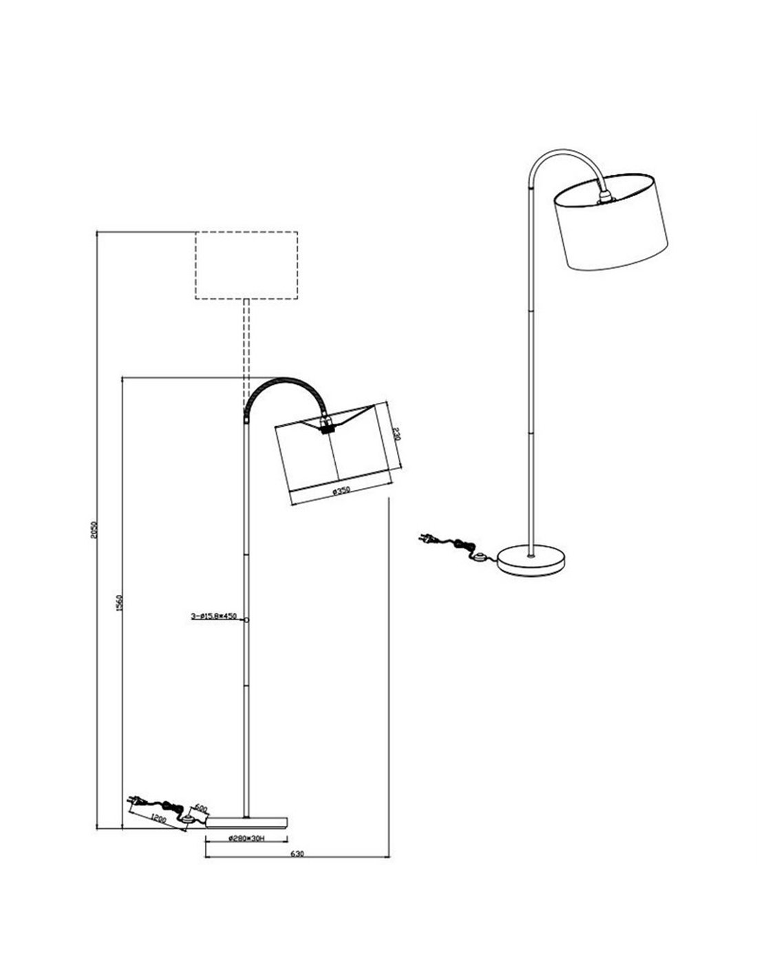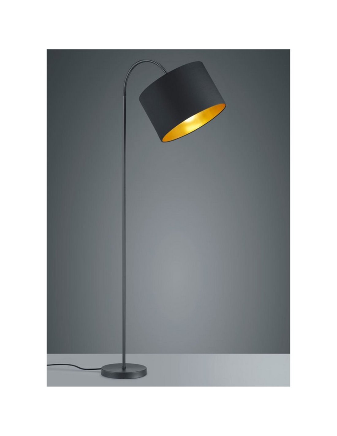 A cúpula de tecido preto suaviza o brilho e proporciona uma luz agradável, ideal para relaxar ou ler. O interruptor de pé torna o uso fácil e prático.