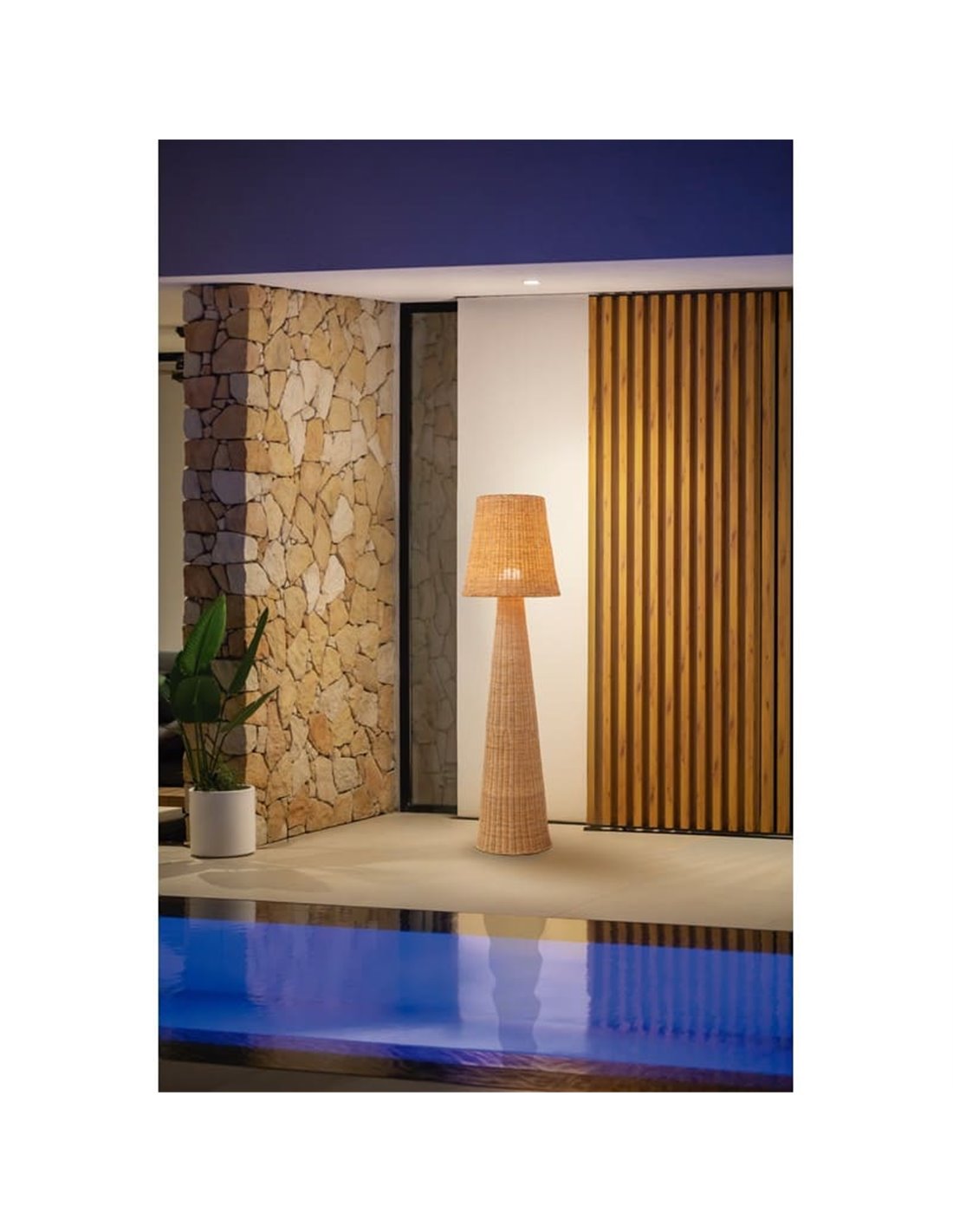 O candeeiro de pé exterior LED LOLA 165 NATURE da New Garden combina o design artesanal com a tecnologia moderna, sendo a escolha ideal para quem procura estilo e funcionalidade nos seus espaços. Sua estrutura em rattan sintético proporciona um toque quente e natural, perfeita para ambientes internos ou externos.