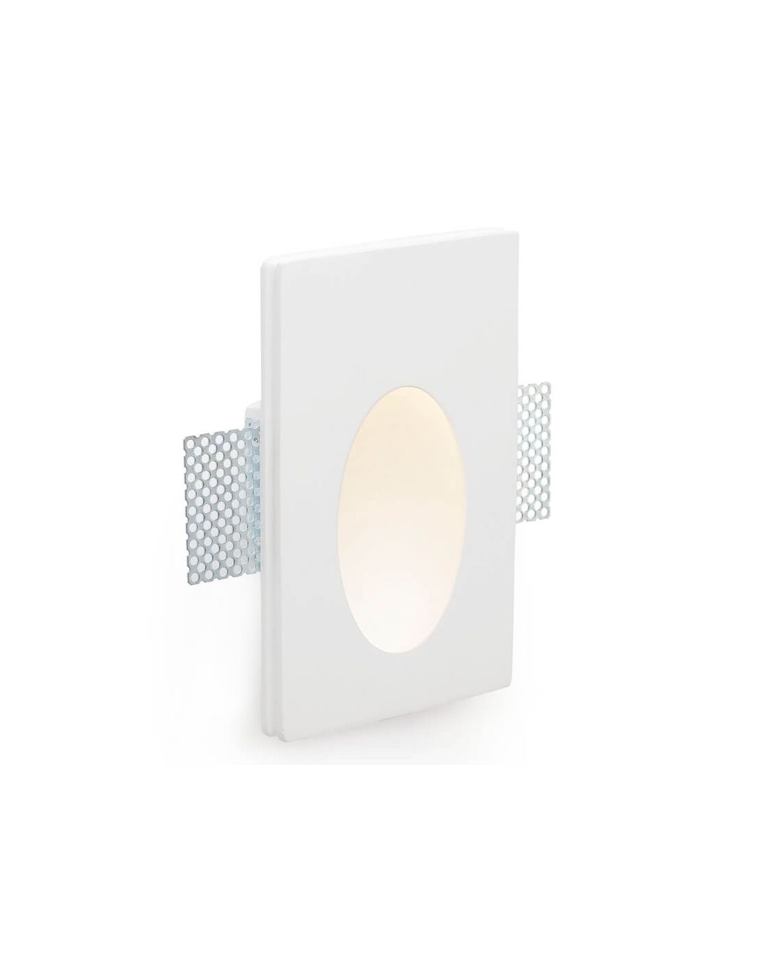 Luminária de embutir LED oval PLAS branca , feita em gesso com acabamento fosco. Luz quente 3000K , 1W, 63 lúmens. Ideal para passagens ou iluminação decorativa de paredes. Recorte de instalação 175x110 mm , ajustável e com fonte de luz incluída. Motorista não incluído.