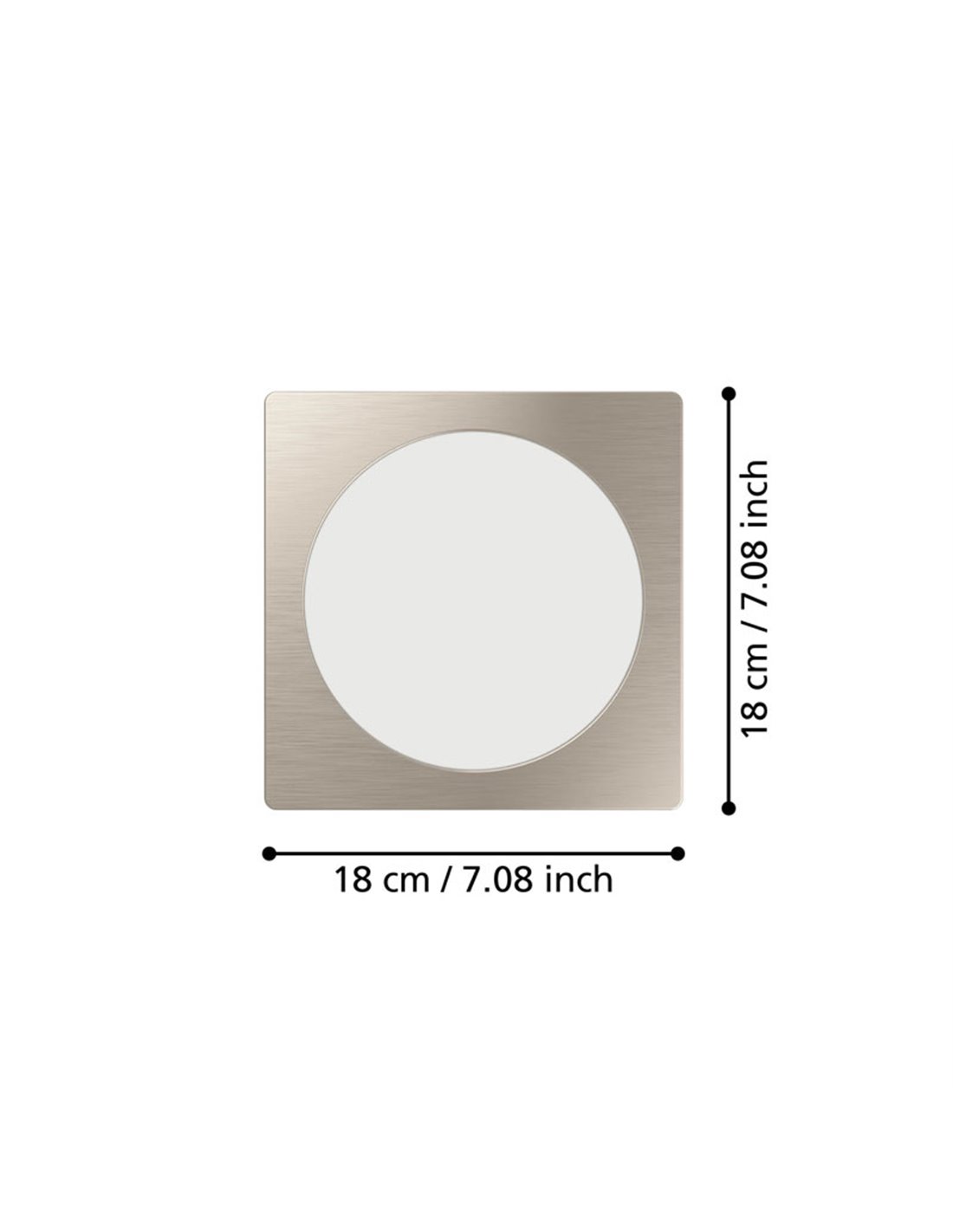 Luminária de embutir LED quadrada FUEVA 6, níquel, 117x117mm, CCT (2700K-4000K-6500K),...