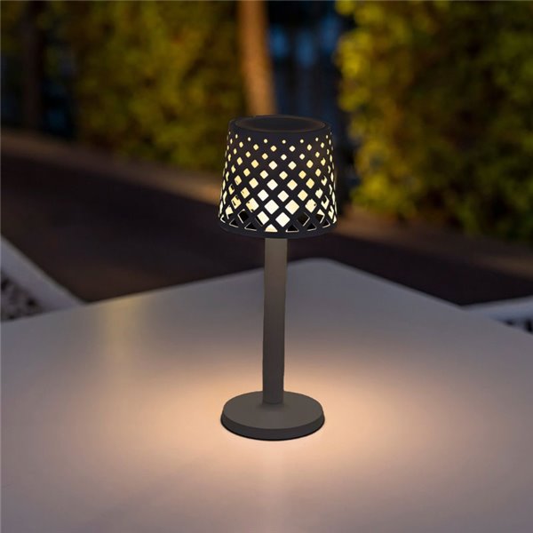 O candeeiro GRETITA é ideal para quem procura uma iluminação decorativa e funcional. Seu design compacto e operação sem fio o tornam perfeito para mesas de jardim, terraços ou áreas externas, como piscinas. Graças ao seu controle por toque , você pode ajustar a intensidade da luz para criar uma atmosfera relaxante ou mais iluminada, dependendo da ocasião. Além disso, sua resistência às intempéries (IP44) permite que ele enfrente qualquer desafio climático, tornando-o adequado para uso interno e externo.
