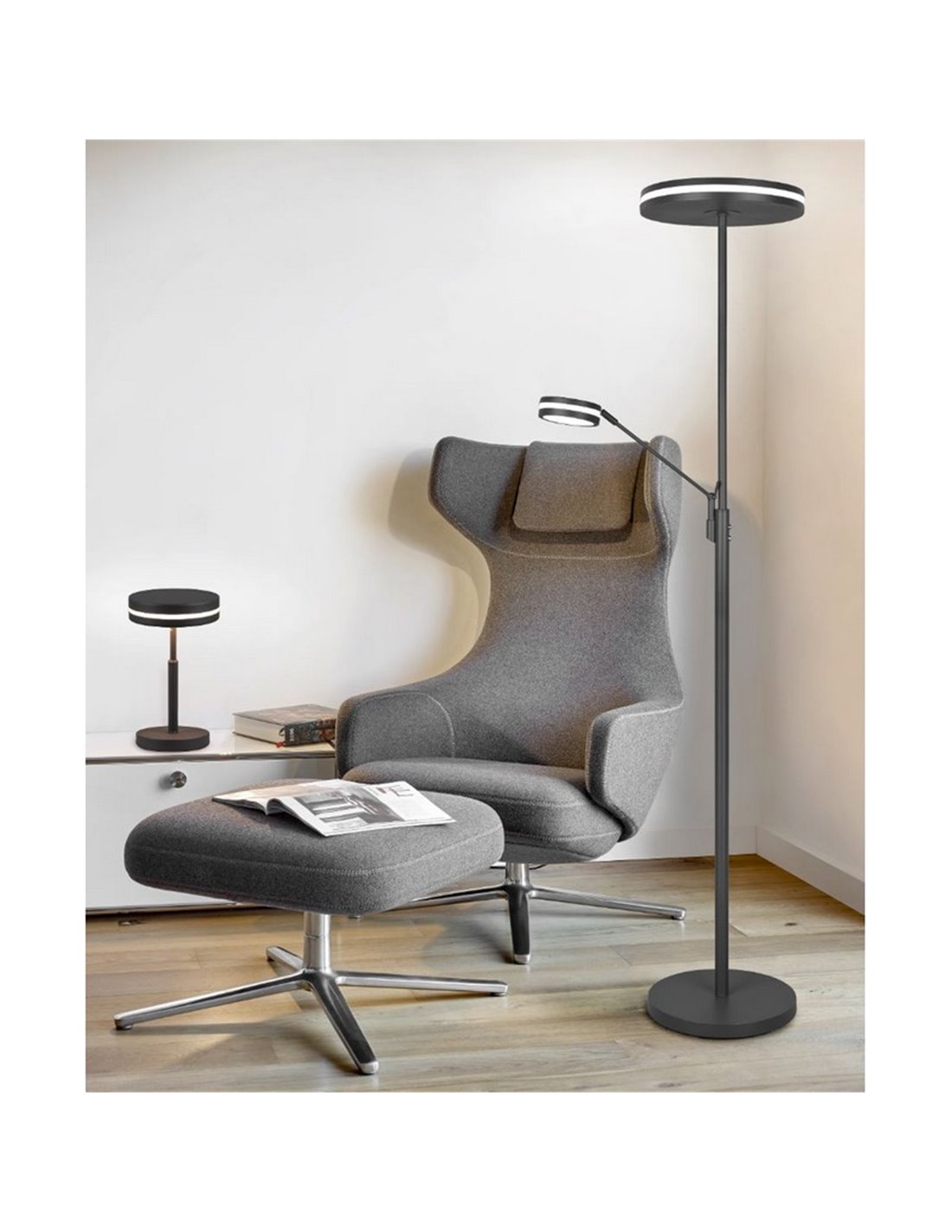Fabricada em metal resistente com acabamento em antracite , esta luminária combina robustez e elegância. Seu design compacto e estável se adapta a diversos estilos de decoração, proporcionando uma fonte de luz funcional sem sobrecarregar o ambiente. Graças à tecnologia LED integrada, reduz o consumo de energia, mantendo alta eficiência luminosa.
