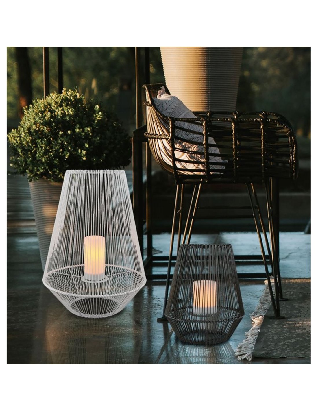 O design em formato de cesta torna esta luminária um acessório decorativo versátil para jardins, terraços ou varandas . Seu acabamento branco proporciona luz adicional e combina facilmente com diferentes estilos de decoração para áreas externas.