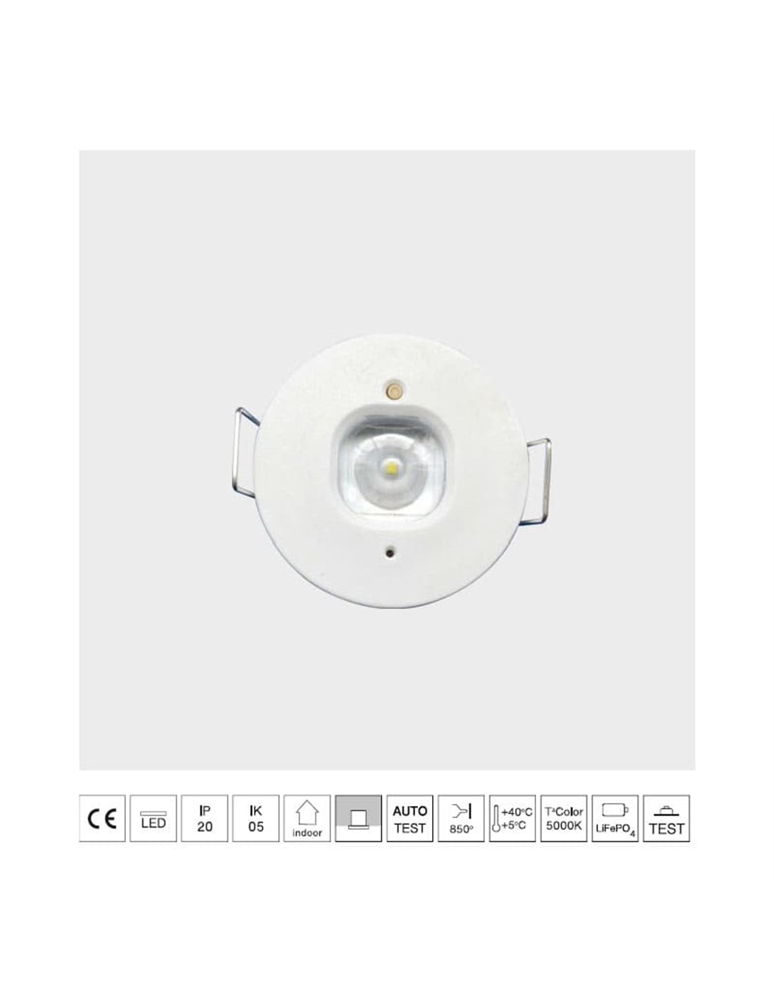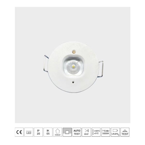 Luminária de pânico permanente LED embutida, K-MINI branca Ø40mm, 182Lm, 5000K,...
