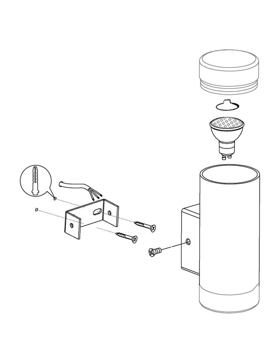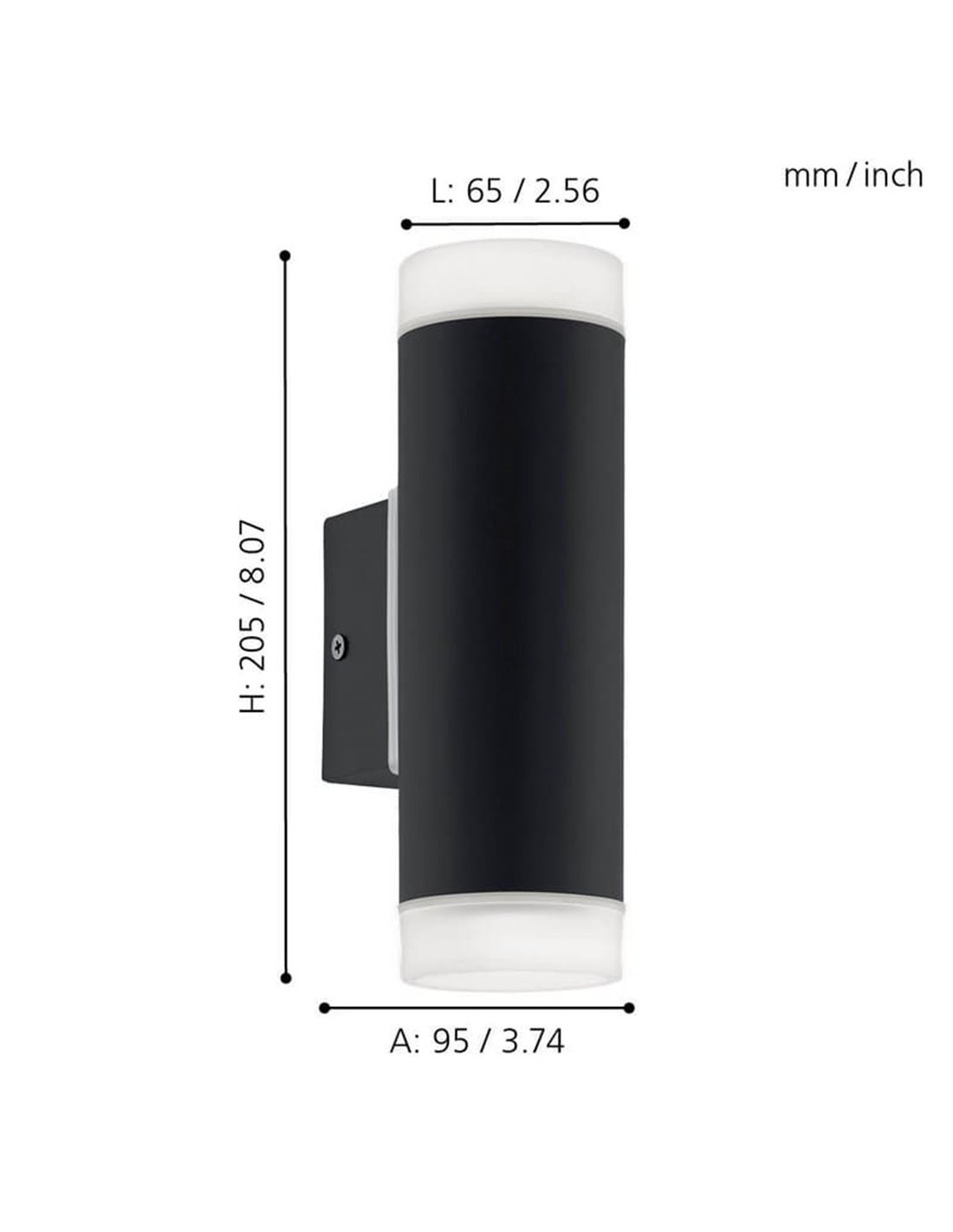 Luminária de parede LED cilíndrica para exterior RIGA, em aço com cobertura de vidro,...
