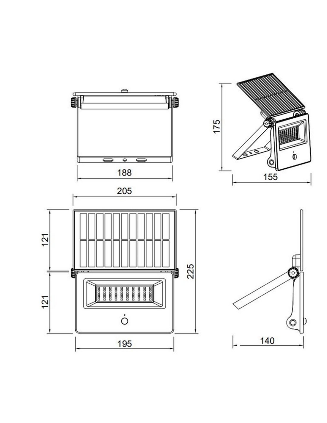 Luminária de parede LED MOURA 1100lm 14x15cm regulável com carga solar, interruptor...