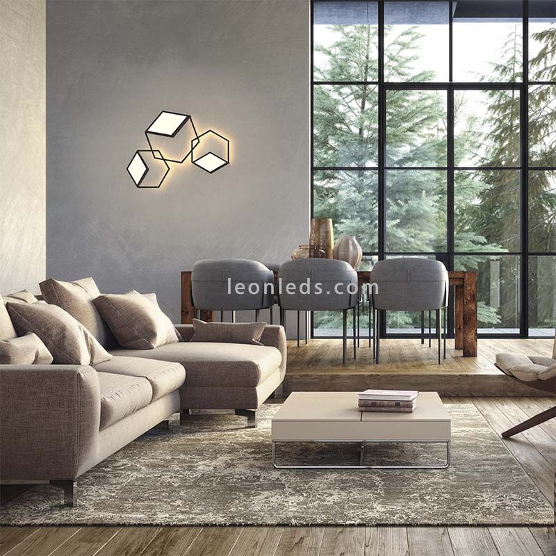 Luminária de teto/parede LED KUBICK, preta, 48W, com design geométrico moderno.