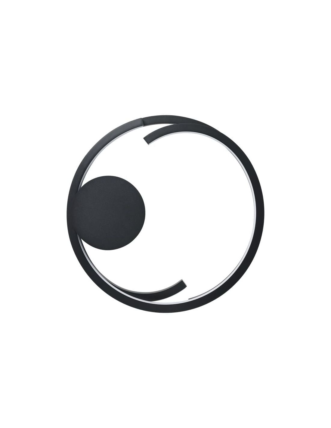 A luminária de teto MEZZOMONTE LED (ref. 901821) destaca-se pela sua estética contemporânea com um anel aberto e curvo em preto fosco . O seu design plano torna-a uma escolha ideal para divisões com tetos baixos, proporcionando uma iluminação uniforme e decorativa em salas de estar ou quartos .