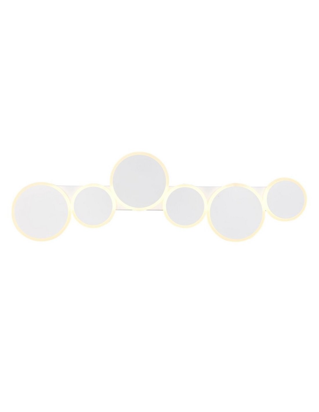 A luminária OVELA branca traz um estilo moderno e arejado graças à sua composição de círculos iluminados . Seu acabamento claro ajuda a criar uma sensação de amplitude e se encaixa perfeitamente em salas de estar, corredores ou quartos onde se deseja uma iluminação equilibrada e um toque decorativo discreto.