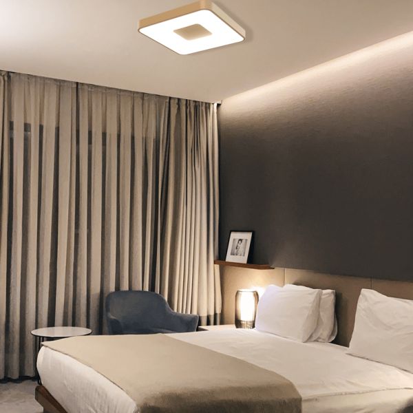Luminária de teto quadrada LED regulável, cor ouro – 3 tamanhos – Mantra Lighting