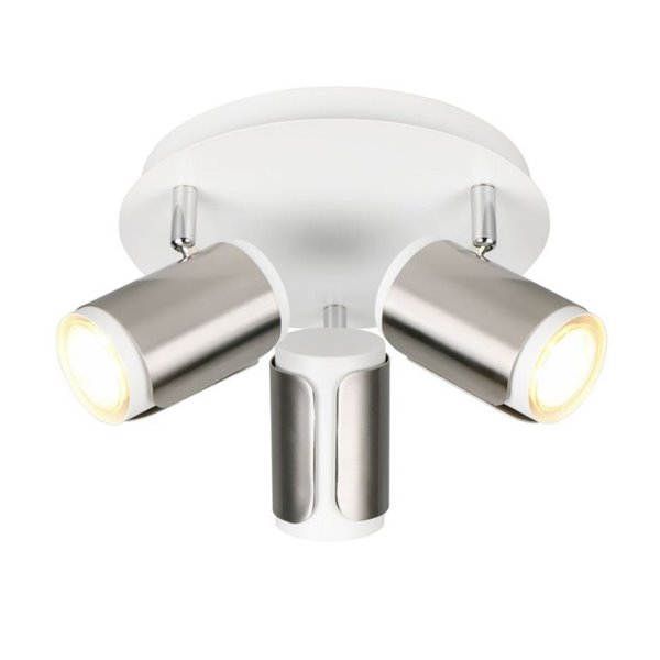 Luminária de teto redonda GILLAN Ø30 cm com 3 focos ajustáveis. Compatível com 3 lâmpadas GU10 de até 10W (não incluídas). Design moderno na cor branca com certificação IP20 , ideal para interiores.