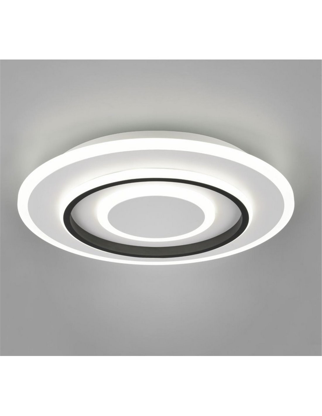 A luminária de teto LED JORA combina um design redondo de 41 cm de diâmetro com acabamentos em preto e branco fosco para conferir um estilo moderno e elegante a qualquer espaço. Seu perfil ultrafino de 6,5 cm se adapta perfeitamente a tetos baixos ou ambientes minimalistas, proporcionando uma iluminação uniforme e decorativa.