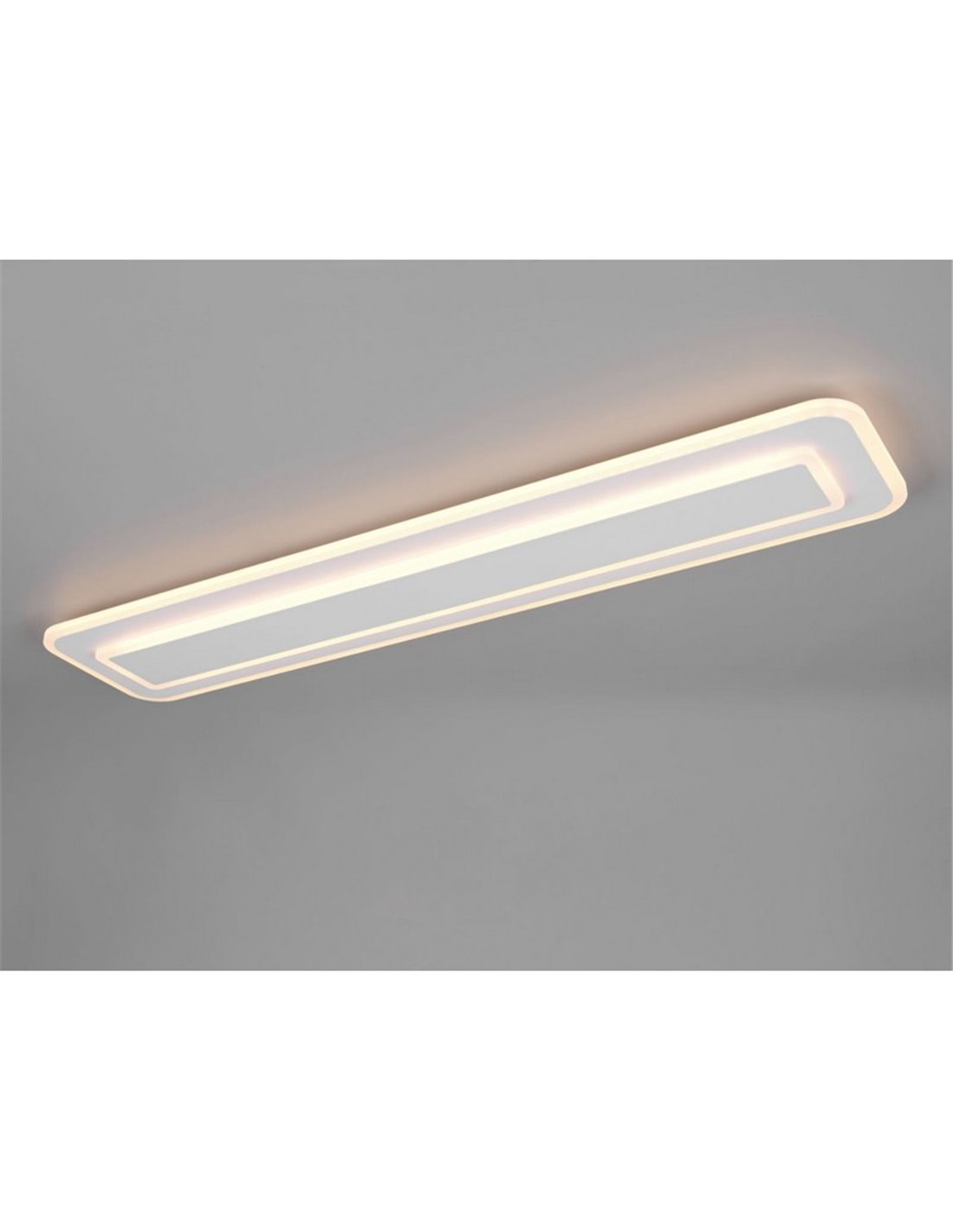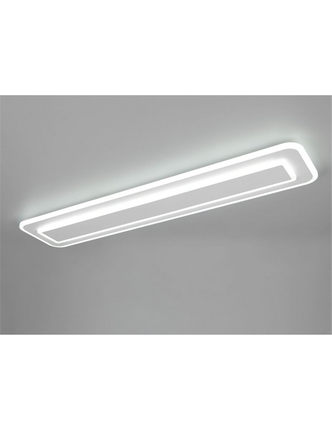A luminária de teto RIVA de 90 cm é uma solução moderna e prática para iluminar grandes ambientes com luz uniforme. Seu acabamento branco fosco e perfil retangular fino a tornam uma escolha discreta e elegante para salas de estar, corredores ou quartos. O difusor proporciona uma iluminação homogênea que permanece confortável mesmo durante uso prolongado.