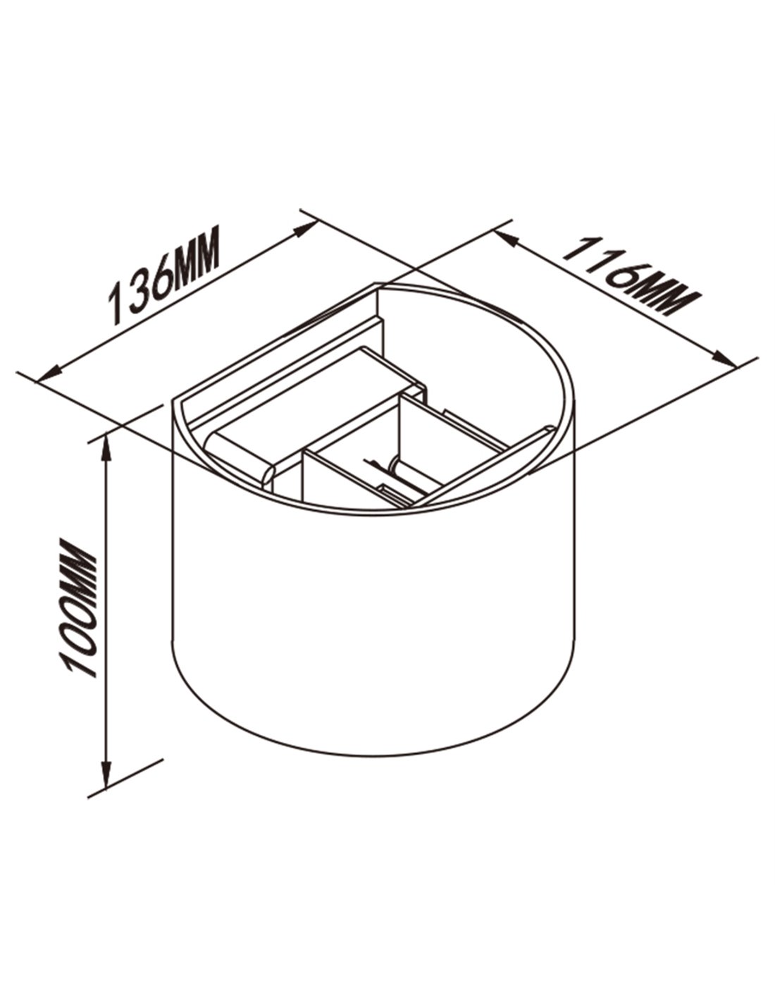 Este modelo destaca-se por oferecer duas tonalidades de luz, dependendo da versão: uma versão de 3000K para uma luz quente e convidativa (ref. 6523) e uma versão de 4000K para uma luz branca neutra mais brilhante e funcional (ref. 7646). O design circular projeta o feixe de luz tanto para cima quanto para baixo e possui abas internas ajustáveis que permitem abrir ou fechar o feixe , obtendo desde linhas de luz mais nítidas até uma iluminação mais suave e ampla da parede. Sua classificação IP54 e corpo em alumínio garantem excelente desempenho contra chuva, umidade e poeira, tornando-o uma luminária de parede LED externa confiável e durável.
