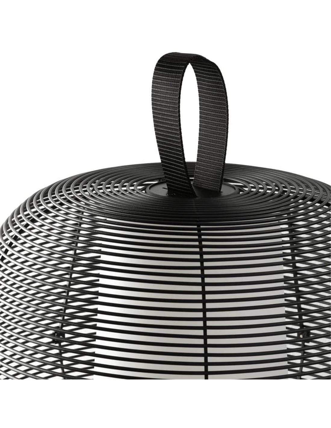 Luminária LED portátil NARA em preto fosco para uso externo. Perfeita para criar ambientes em jardins e terraços . Também disponível em bege e ferrugem .