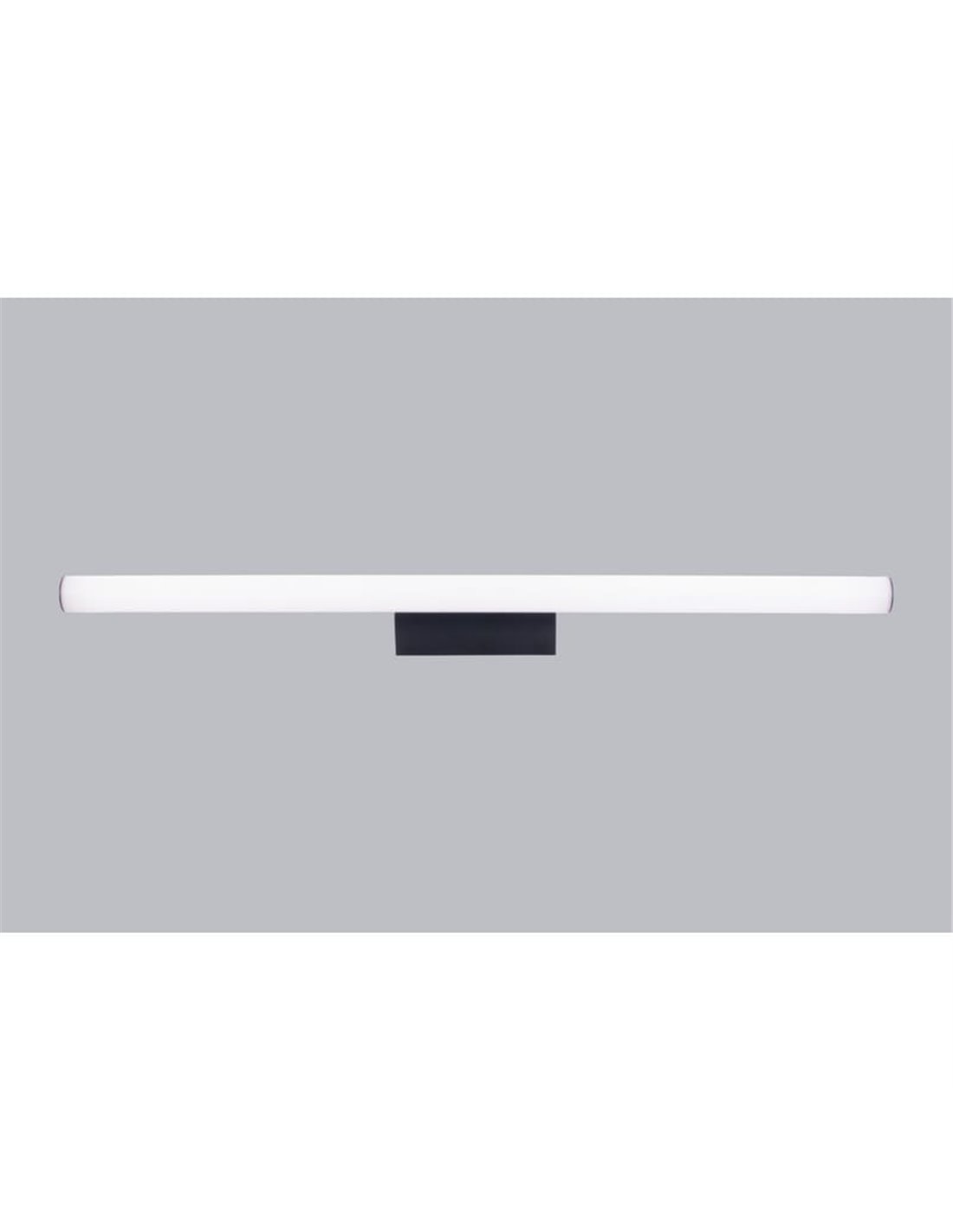 A luminária de parede LED ANTIGA 18W preta, com 89,2 cm de comprimento, foi projetada para proporcionar iluminação eficiente e decorativa sobre espelhos grandes. Sua estrutura alongada e acabamento preto fosco a tornam um complemento funcional e sofisticado para qualquer banheiro moderno.