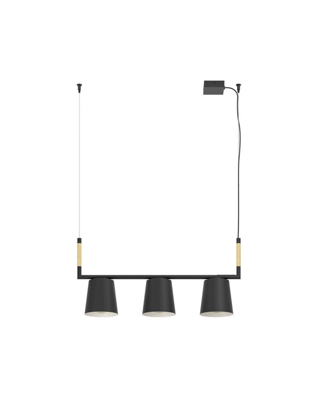 O pendente LACEY de 3 luzes da Eglo é uma peça que combina design industrial com toques rústicos . Seus três tons de preto e detalhes em madeira natural acrescentam aconchego e estilo a qualquer ambiente.