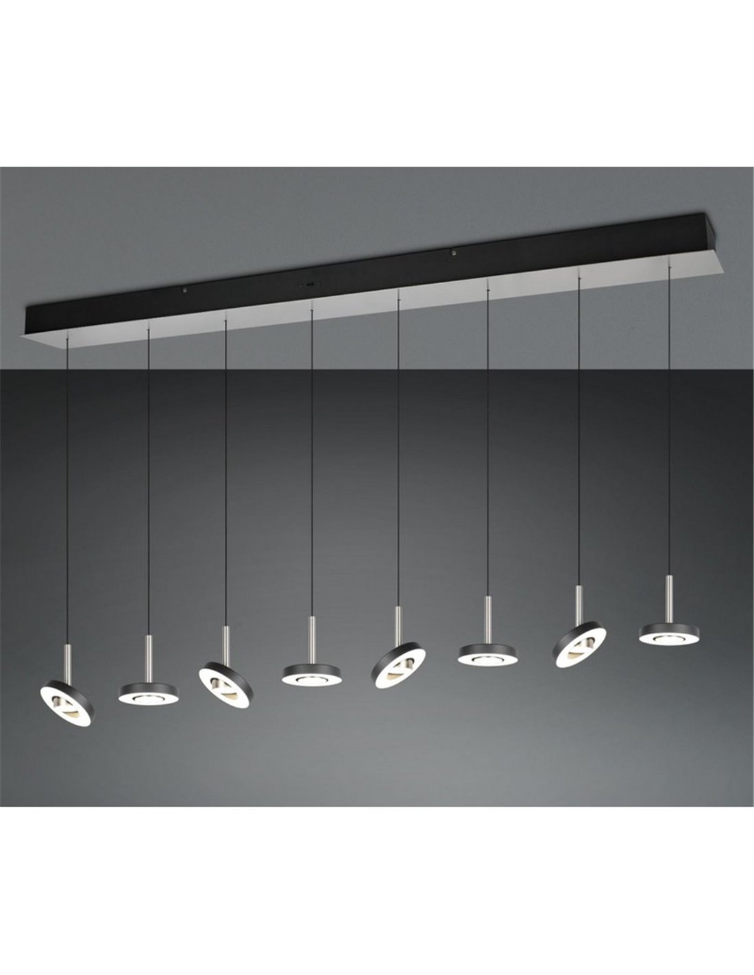 Luminária pendente LED GUANO 8x8W em níquel fosco com ajuste DIP SWITCH