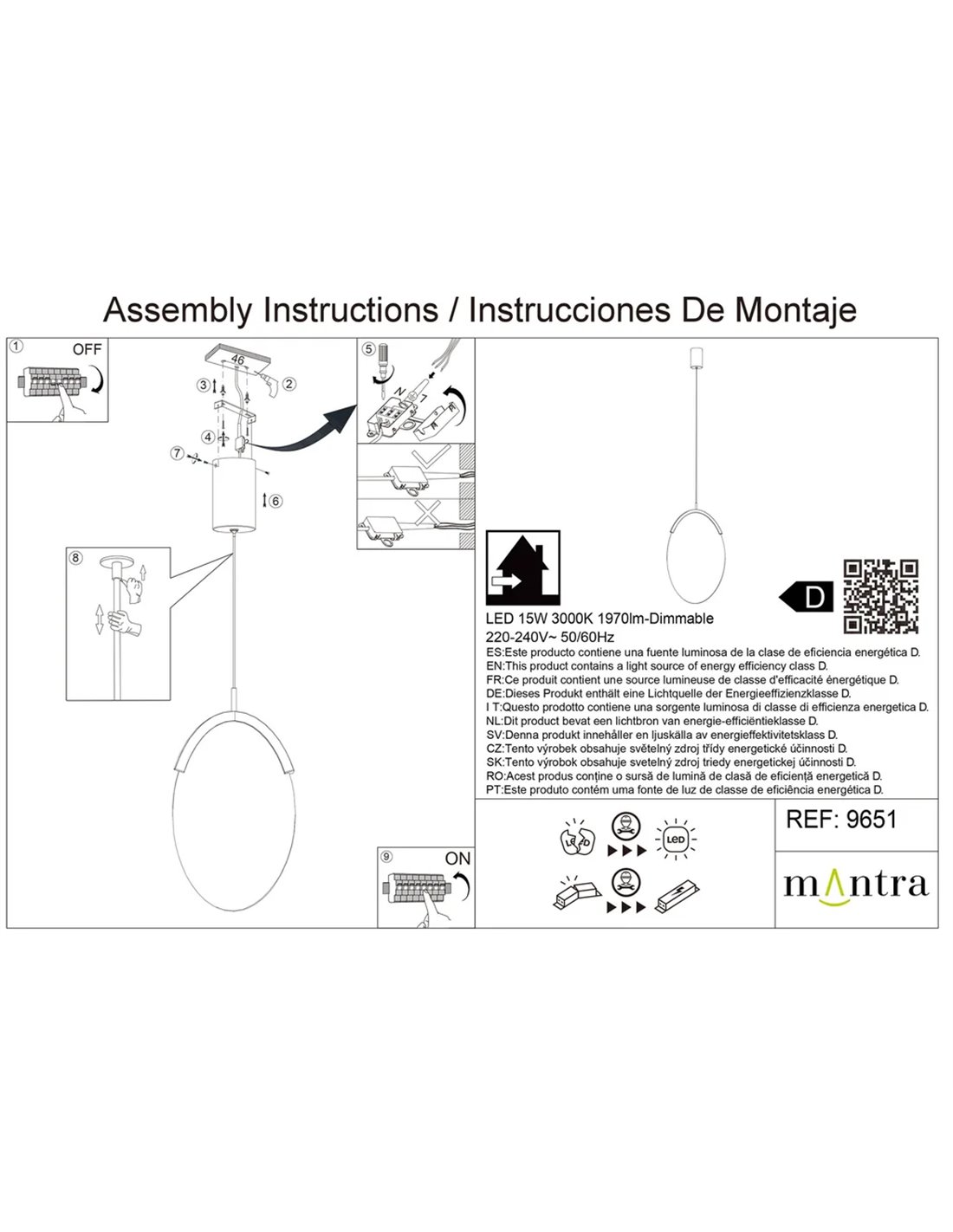 Luminária pendente alongada OASIS 12W Gold LED, Ø24,5 cm, TRIAC dimerizável 3000K, 420...
