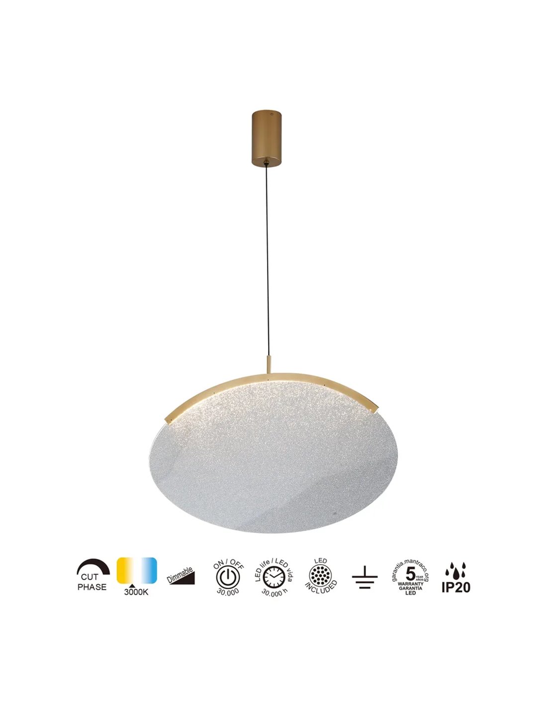 Luminária pendente LED OASIS 15W dourada, Ø39 cm, TRIAC dimerizável 3000K, 525 lúmens,...