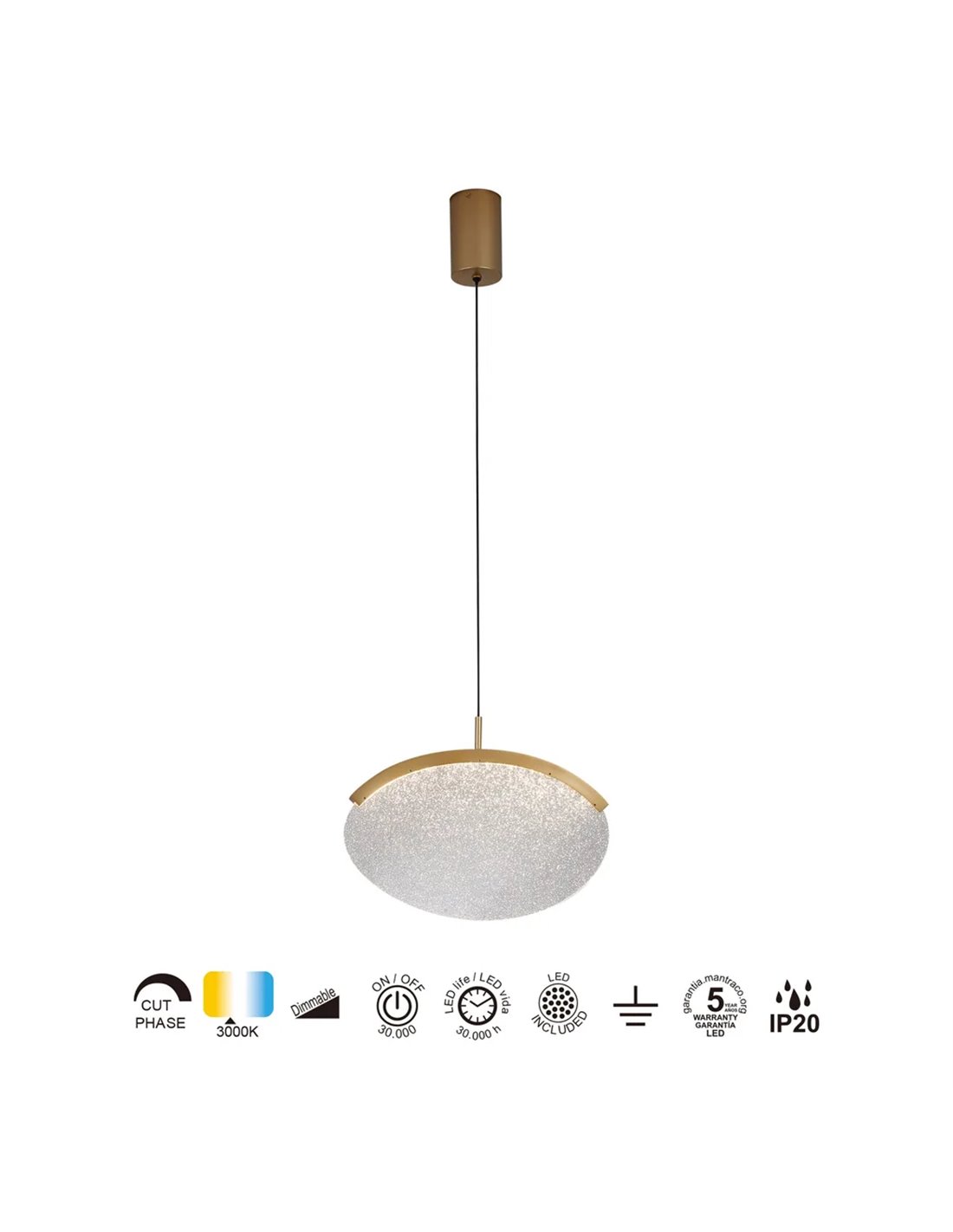 Luminária pendente LED OASIS 15W dourada, Ø39 cm, TRIAC dimerizável 3000K, 525 lúmens,...