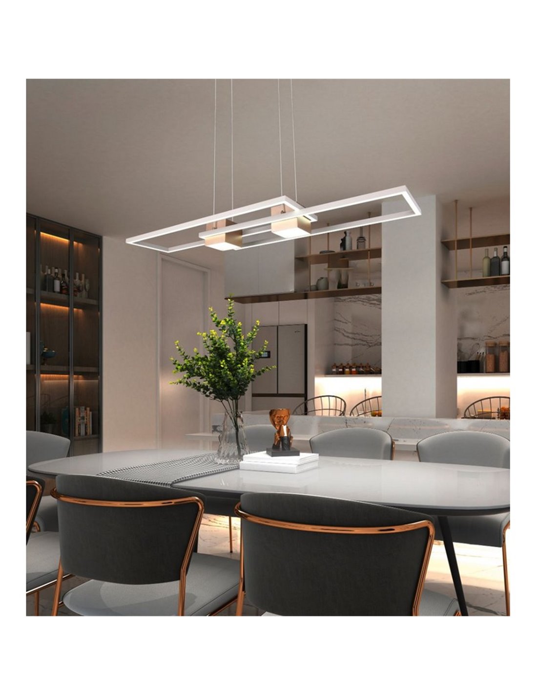O candeeiro de teto ALBANY na cor café confere um toque sofisticado graças ao seu acabamento quente e à sua estrutura retangular leve. Foi concebido para iluminar mesas de jantar, salas de estar espaçosas ou ambientes contemporâneos onde se pretende um equilíbrio entre estética e funcionalidade.