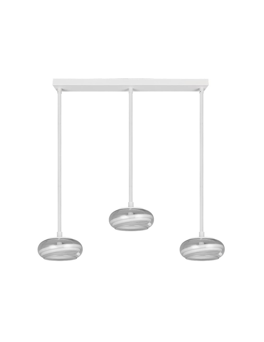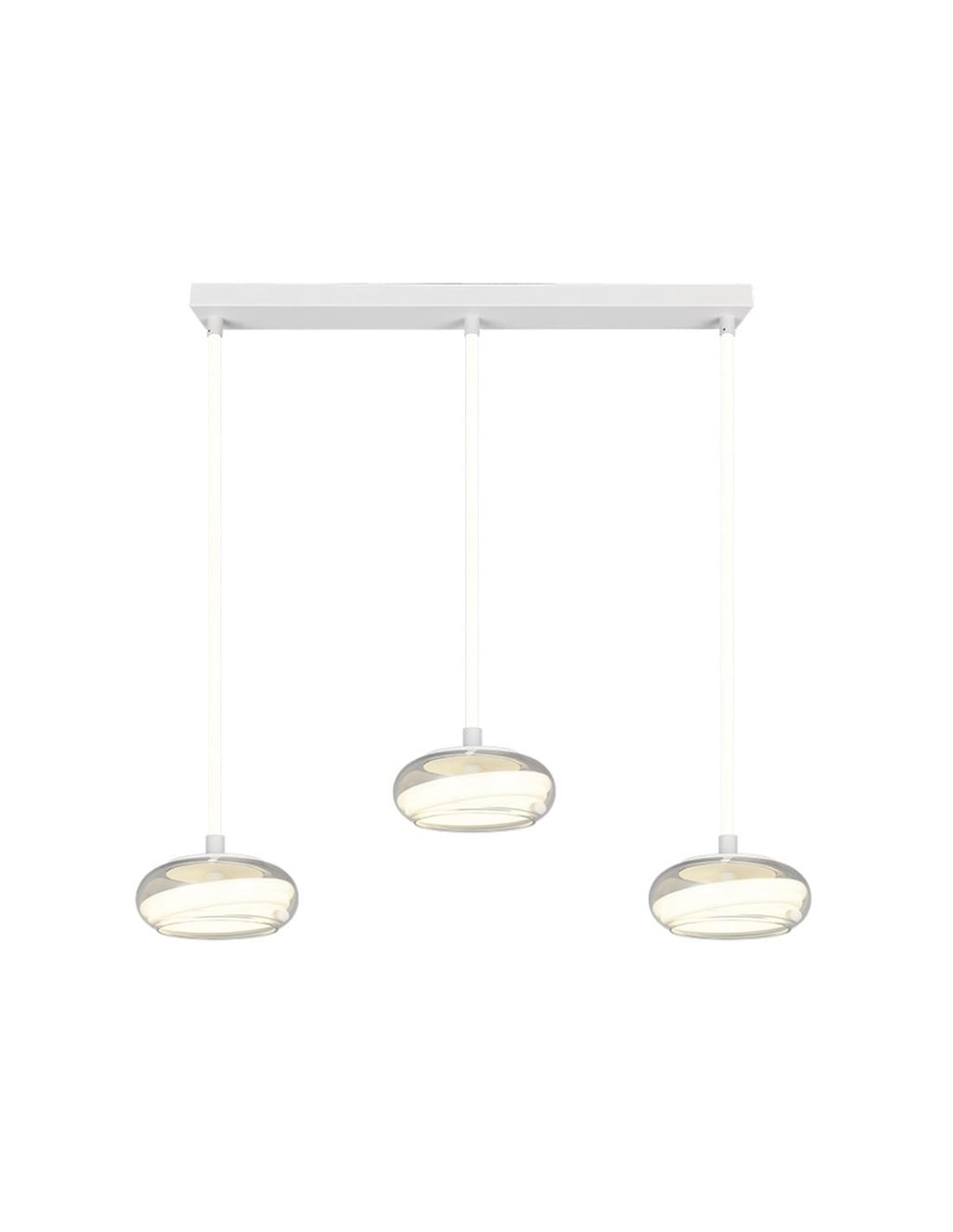 Luminária pendente LED TARSIA branca fosca com 3 lâmpadas para uso interno.