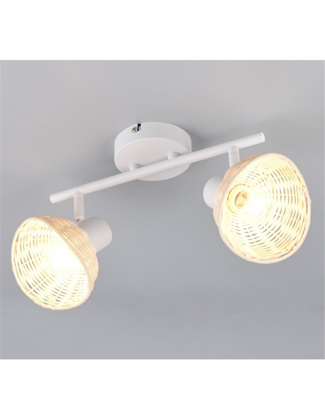 Os spots de teto CALVI de 2 luzes combinam uma estrutura de metal branco com cúpulas de rattan natural , adicionando aconchego e um toque mediterrâneo. Cada spot é ajustável, permitindo direcionar a luz conforme a necessidade. Compatíveis com lâmpadas E14 (não inclusas) e adequados para instalação no teto ou na parede .