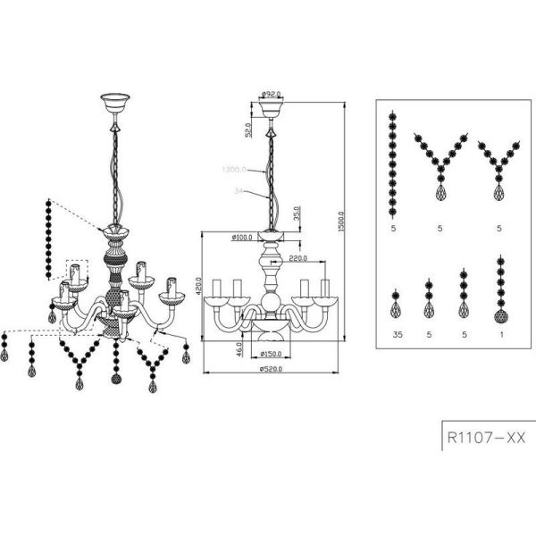 Com cinco luzes e pendentes decorativos, o candeeiro LÜSTER oferece uma iluminação brilhante e elegante que acrescenta um toque de glamour a qualquer divisão. A sua suspensão de 150cm e 52cm de diâmetro garantem que este candeeiro se destaque onde quer que seja colocado.
