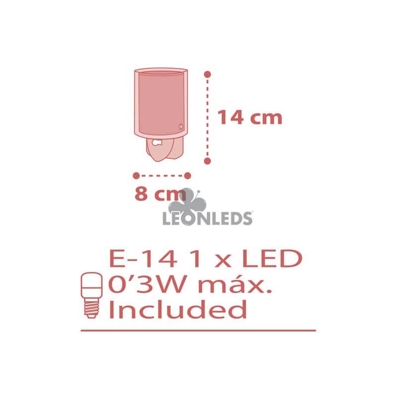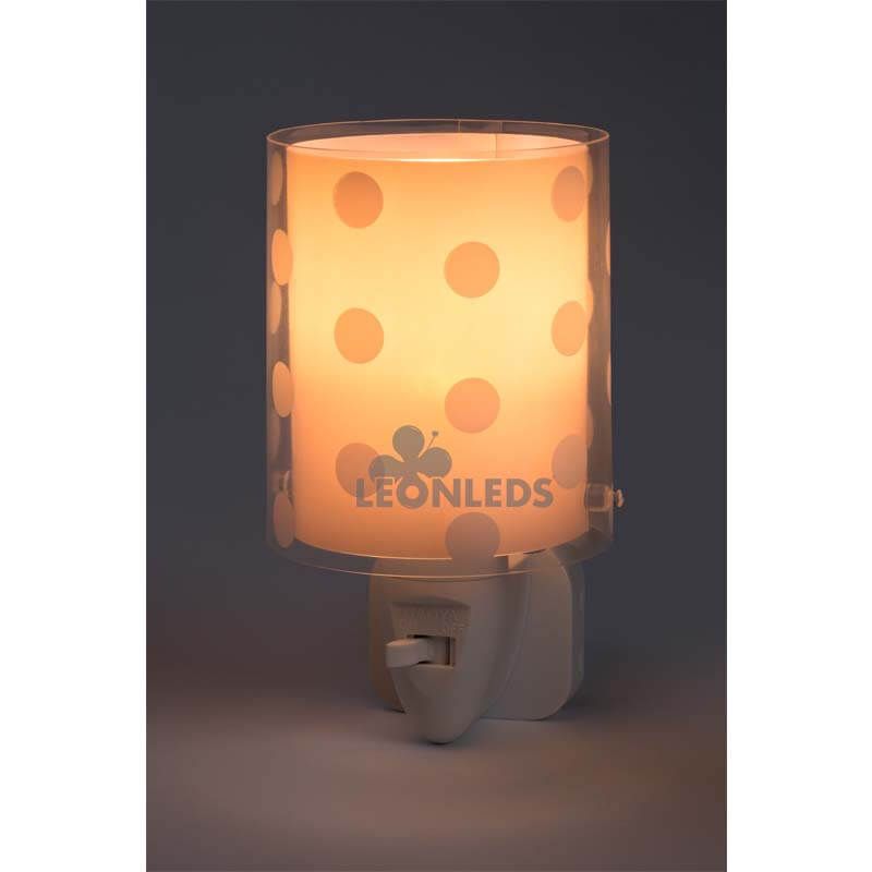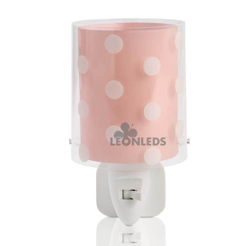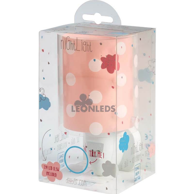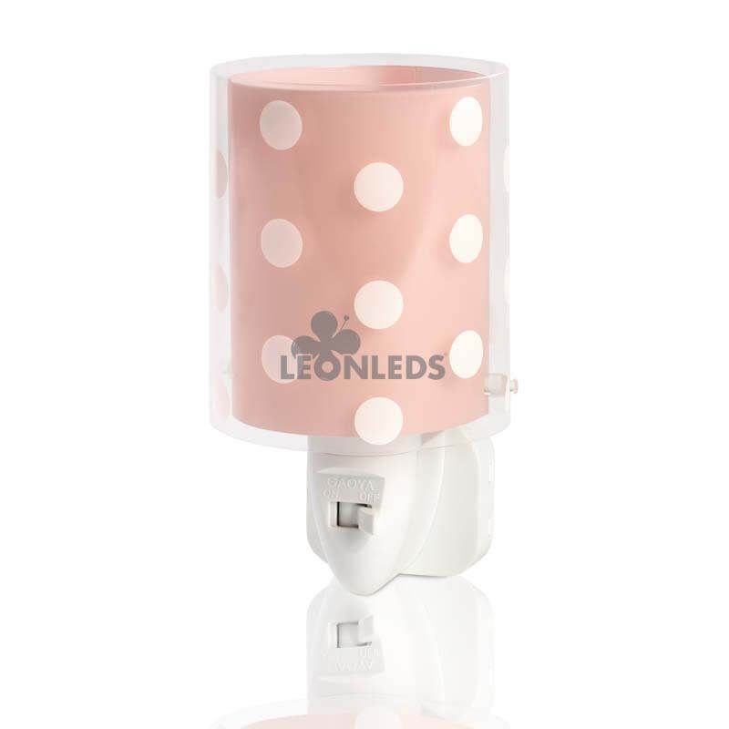 Luz noturna LED rosa com interruptor da coleção Dalber Dots. Inclui um interruptor na frente que permite ligar e desligar a luz noturna LED sem ter que removê-la da tomada.