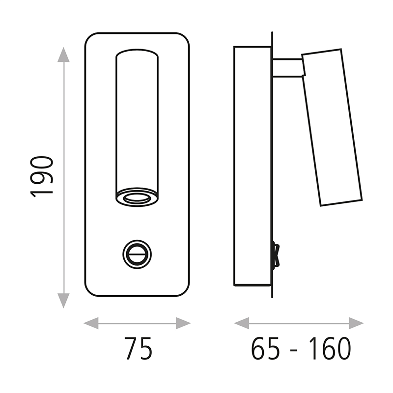 Desfrute de uma iluminação interior confortável, eficiente e elegante com o aplique Aron disponível em acabamento preto ou níquel. Este candeeiro de parede mede 190 mm de altura e 75 mm de largura, com uma profundidade ajustável entre 65 mm e 160 mm.