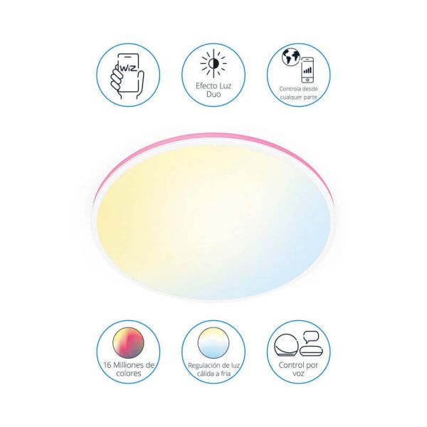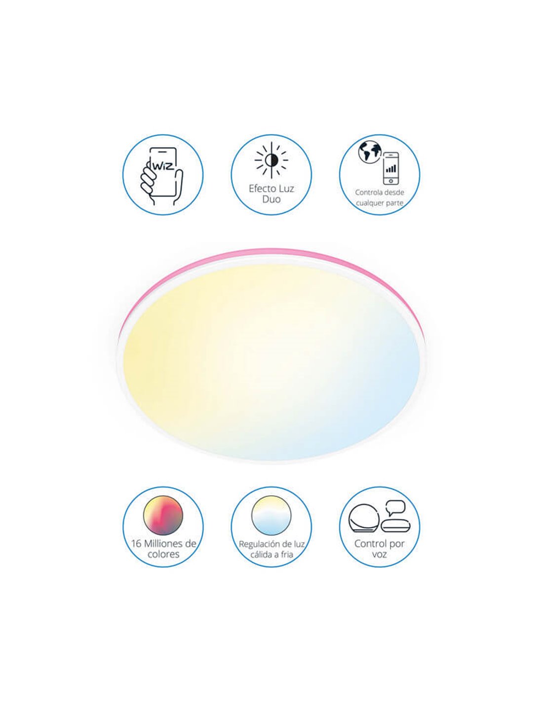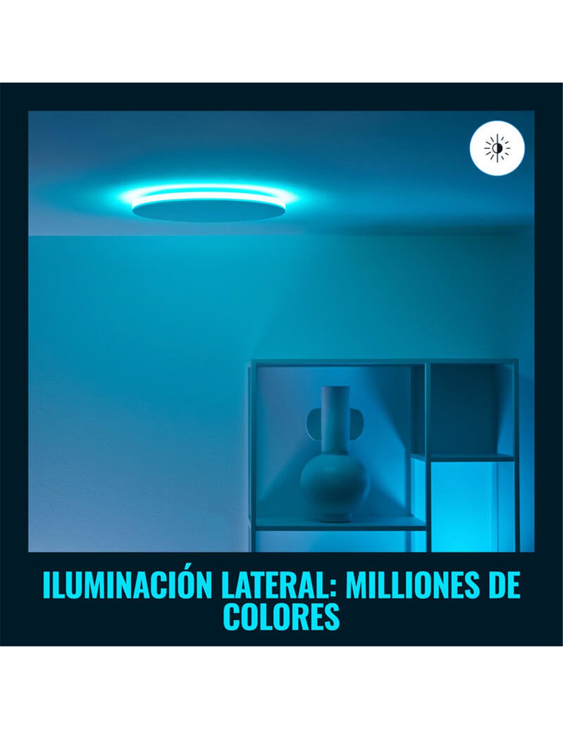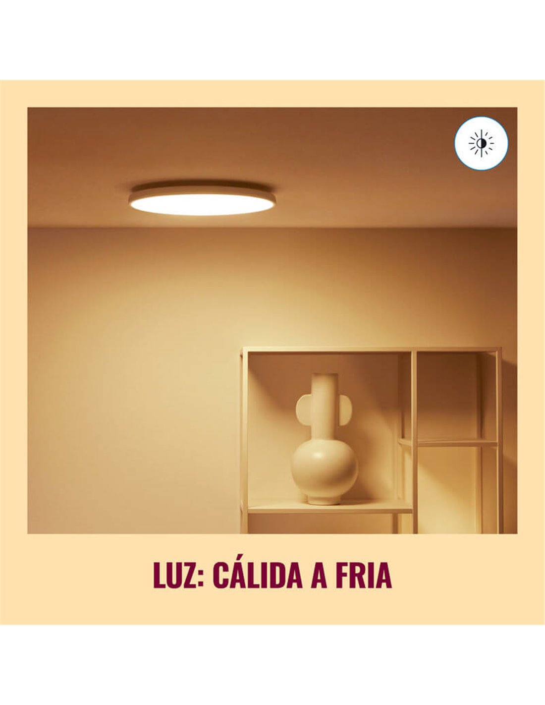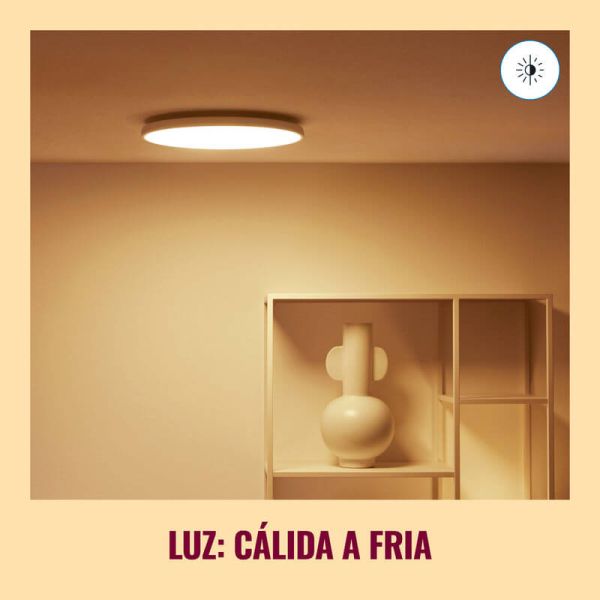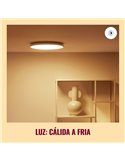 É um produto que faz você se apaixonar à primeira vista, não só pelo seu design limpo e fresco, mas também pelas especificações que inclui. Desfrute de iluminação total graças a um fluxo de 2100 lúmens com temperatura de cor de 2700-6500K e potência de 21W. Isto permite que a principal fonte de luz deste teto se destaque graças à luz branca brilhante e à luz quente para atividades diárias e relaxamento. Adapta-se perfeitamente em salas de estar, cozinhas, escritórios, corredores, etc.